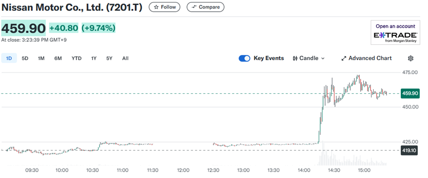 在高层希望吸引特斯拉投资的消息曝出后,日产周五股价大涨,截至发稿,其涨幅约为10%,凸显出投资人对这一策略的看好。