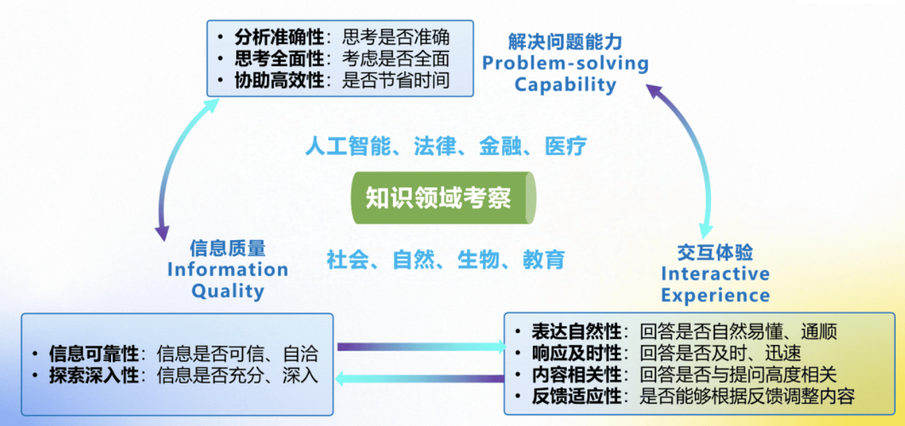 其中,“认知科学驱动”评估框架围绕解决问题能力、信息质量、交互体验三大核心维度,构建覆盖多场景、多领域的主观评测体系。通过模拟学术研究、数据分析、决策支持等真实人类需求,由用户与大模型协作完成任务,并基于人类主观反馈量化评估模型的实际应用价值,为下一步技术研发与产业落地提供科学参考。