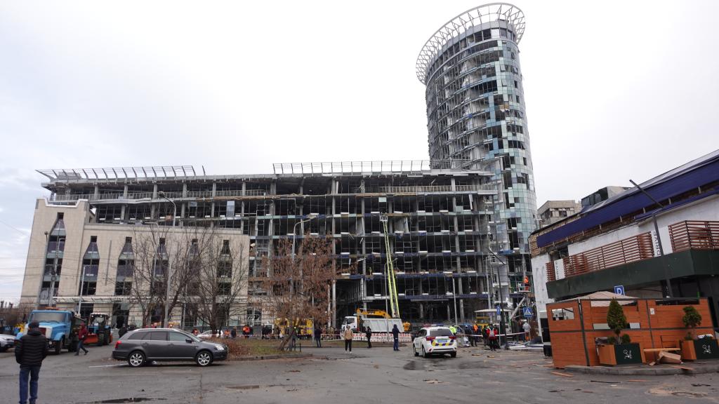 这是2025年1月18日拍摄的乌克兰首都基辅市舍甫琴科夫斯基区一栋遭“伊斯坎德尔”导弹袭击的办公大楼。新华社