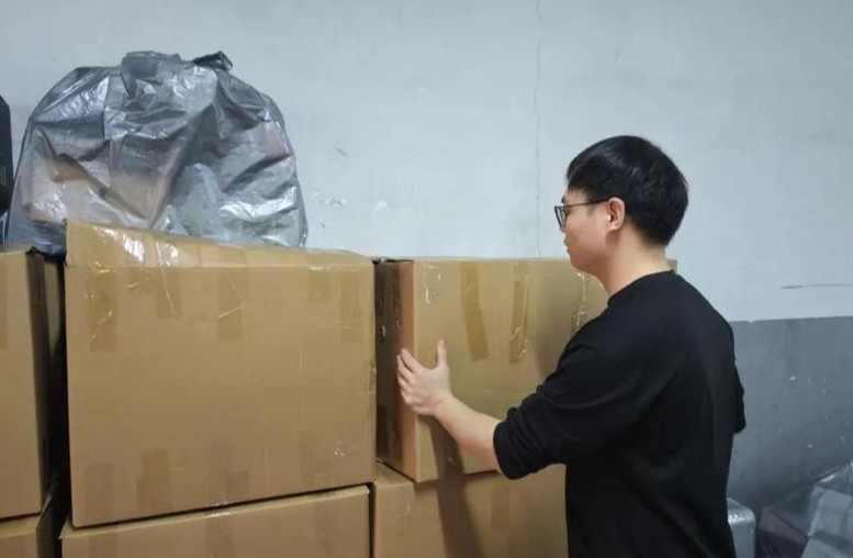 陈源正在收拾打包中。