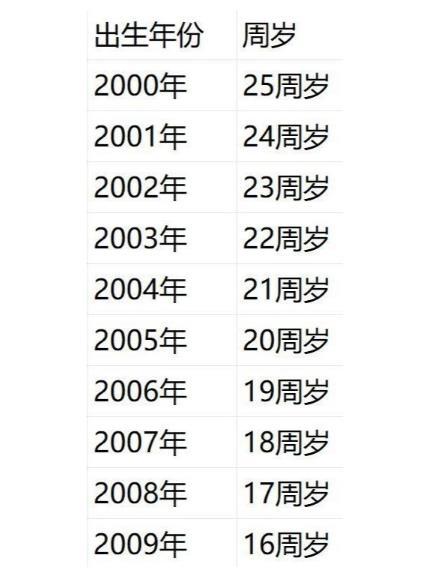 一张“2025年00后的年龄对照表”