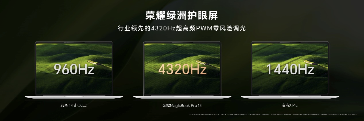 延续荣耀护眼基因,荣耀MagicBook Pro 14搭载荣耀绿洲护眼技术,支持行业最高4320Hz超高频PWM零风险调光,以及类自然光护眼技术,并通过视觉舒适度测试A+认证等多重权威护眼技术,树立起行业护眼新标杆。