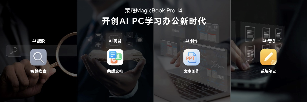 荣耀MagicBook Pro 14的AI能力进一步升级,在搜索、阅读、创作和笔记四大应用场景下,带来行业最强的端侧智慧搜索、隐私投屏、声纹降噪、以及荣耀笔记等创新AI功能,助力学习办公更简单高效。另外,荣耀MagicRing将支持跨品牌兼容,打造首个全品牌互传厂家,让荣耀MagicBook Pro 14实现一键分享文件至iPhone。