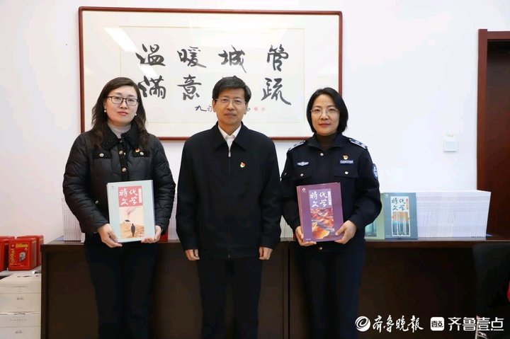 山东省作家协会党组成员、副主席陈文东代表期刊社向社区和服务中心捐赠《山东文学》《时代文学》等刊物、书籍两百余册,并号召广大文学工作者深入基层,用笔墨记录城市管理的温暖点滴,传递平凡岗位的不凡力量。