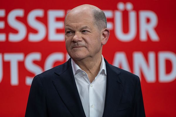 2月23日,在德国柏林的社民党总部,社民党总理候选人、现任总理朔尔茨出席竞选之夜活动。(新华社)