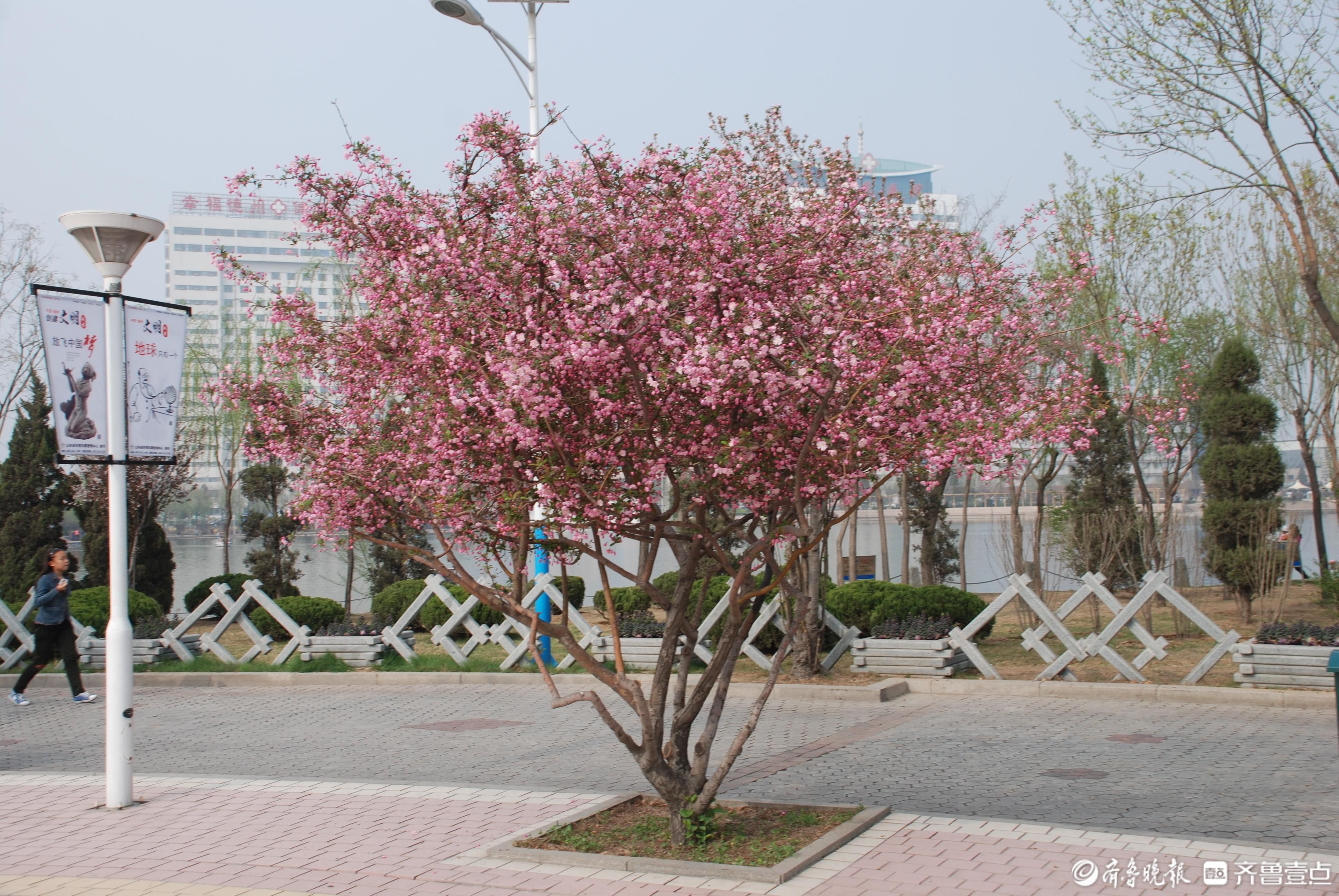3月下旬4月上旬盛花期。植物园、东方红东路、康博大道、董子园景区、三八东路及其他道路、游园、小区常见。