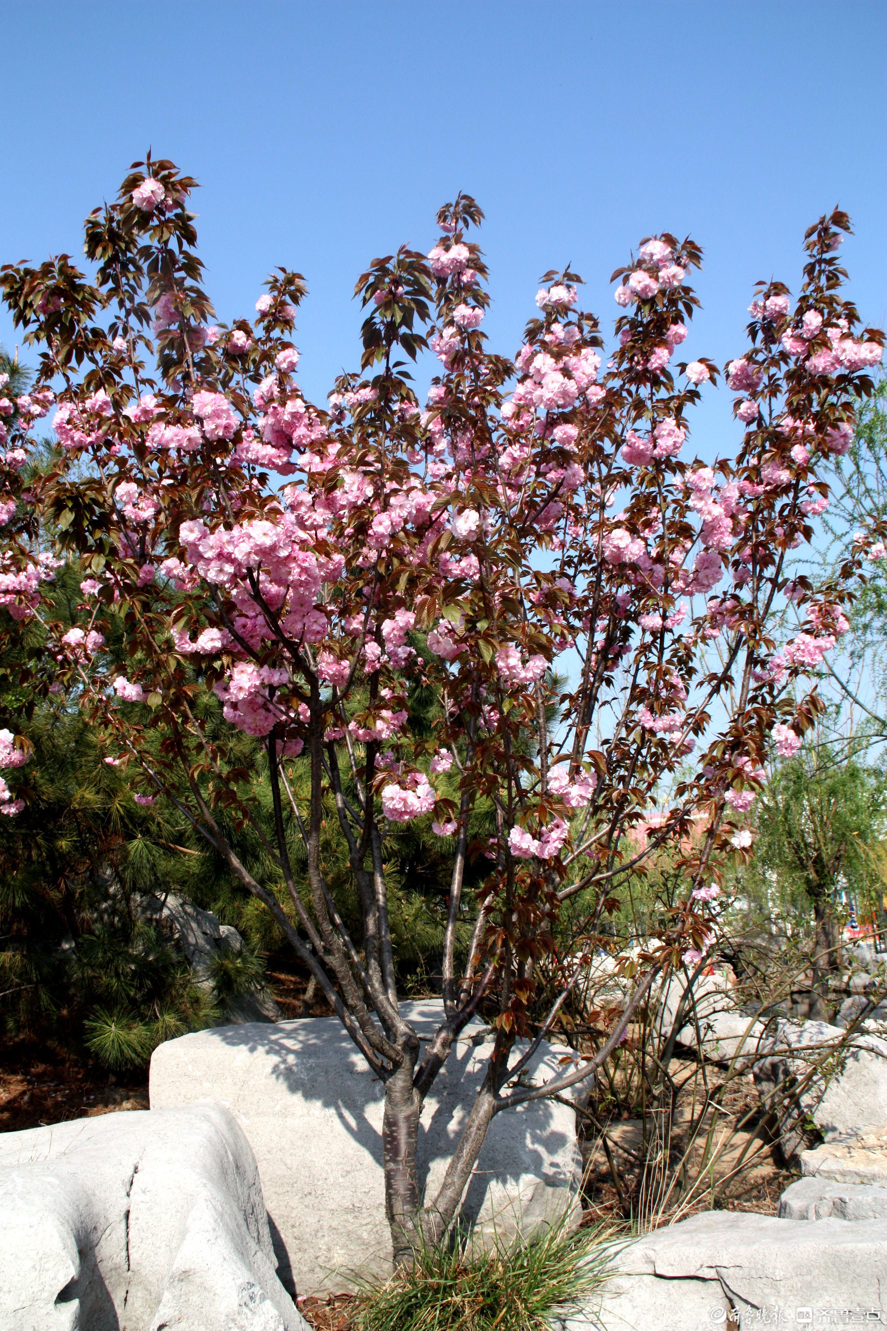 花淡粉红色,叶子紫红色,花叶同放,有“艳如桃李”之誉。诗词有“花瓣如玉雕,清香破窗入”“紫叶粉白花绽放,簇拥雅洁溢芳香”“不待清明近,莺花已自忙”。