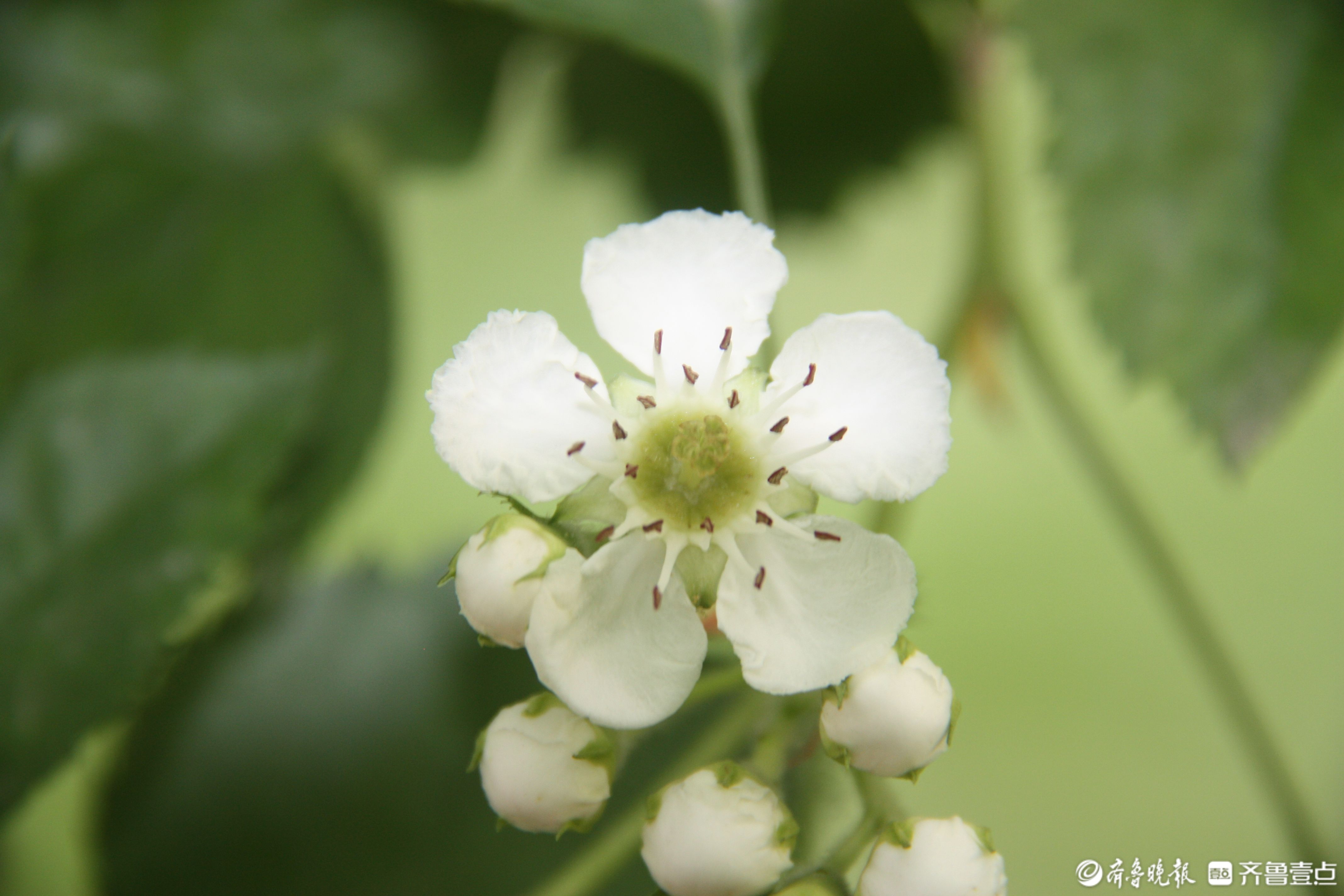 花时满树绿白相间,雅洁可爱。诗词有“枝屈狰狞伴日斜,迎风昂首朴无华。从容岁月带微笑,淡泊人生酸果花”。