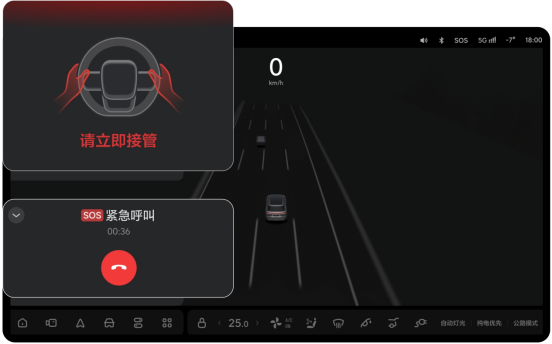 智驾状态下,AD Pro用户长时间脱手、脱眼未接管车辆,将触发自动紧急救援呼叫功能,以防止驾驶员突发的身体疾病导致失去驾驶能力,让驾驶员能够第一时间得到远程救援。
