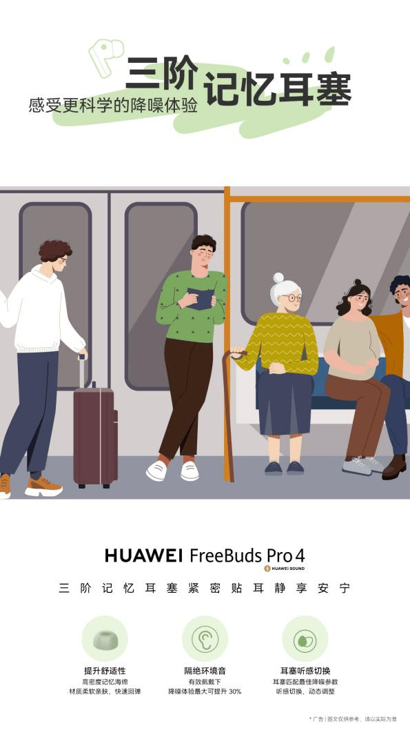 除了软件层面的智能保护,华为FreeBuds Pro 4在硬件上也充分考虑了听力健康。它配备了全新的三阶记忆耳塞,在提升佩戴舒适度的同时,显著增强了降噪效果。配合智慧动态降噪3.0技术,在嘈杂环境中,用户无需过度提高音量也能清晰聆听,有效降低了听力受损的风险。同时,华为FreeBuds Pro 4还提供硅胶耳塞,并拥有多种尺寸,以适应不同用户的耳道大小。用通过智慧生活App,可以进行耳塞听感切换,选择最适合自己的降噪模式和佩戴体验。