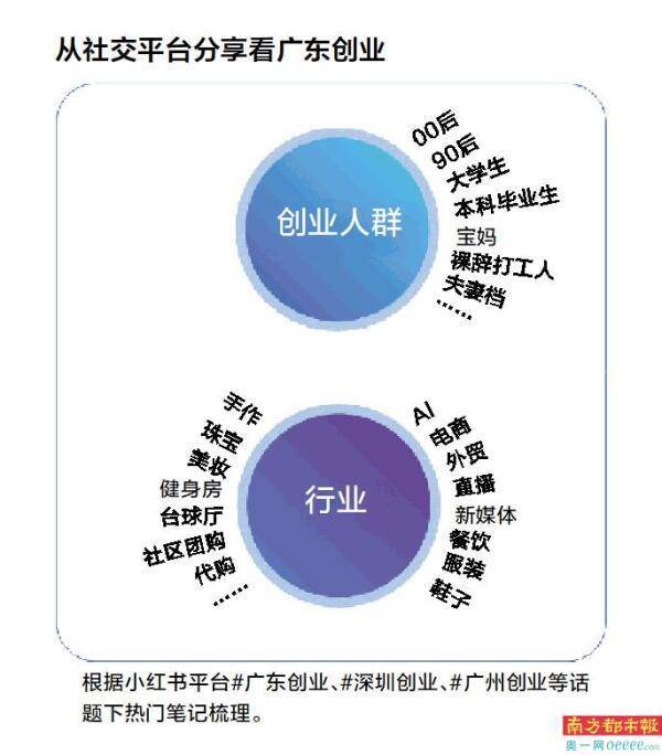 分析网友观点发现,“创业来广东”也正成为共识。截至2月27日,在小红书上,“#深圳创业”话题浏览量超1.1亿,讨论量超63万;“#广州创业”话题浏览量超1731万,讨论量超16万。根据这些创业者的分享,他(她)们多为“00后”“90后”“大学生”等年轻群体,也不乏“宝妈”“夫妻档”“裸辞打工人”等。而他们创业的行业,涵盖了从AI、直播电商、新媒体到服装、餐饮、美妆等领域。