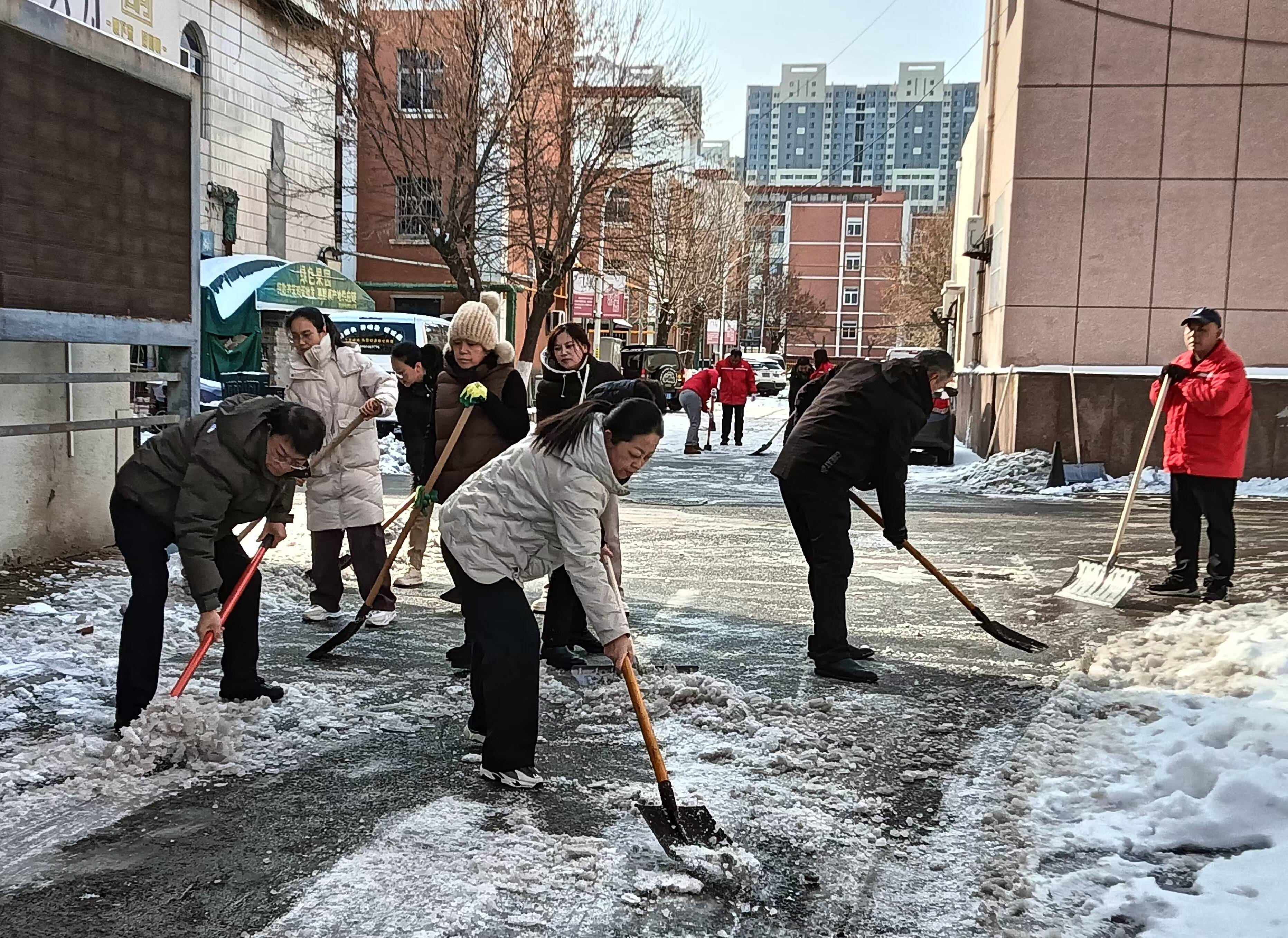 雪后的清晨虽然寒冷,但社区工作人员热情不减,铁锹与地面的碰撞声、扫帚清扫积雪的沙沙声,奏响了一曲冬日里的“暖心乐章”。在扫雪现场,大家干劲十足,一铲一推,动作娴熟有力。有的用铲子铲除厚厚的积雪,有的用扫帚清扫路面碎冰,还有的负责将积雪堆运至路边。 几个小时后,社区内主要道路、小区出入口及公共场所的积雪和冰层被基本清除,为居民开辟出一条条“安全通道”。