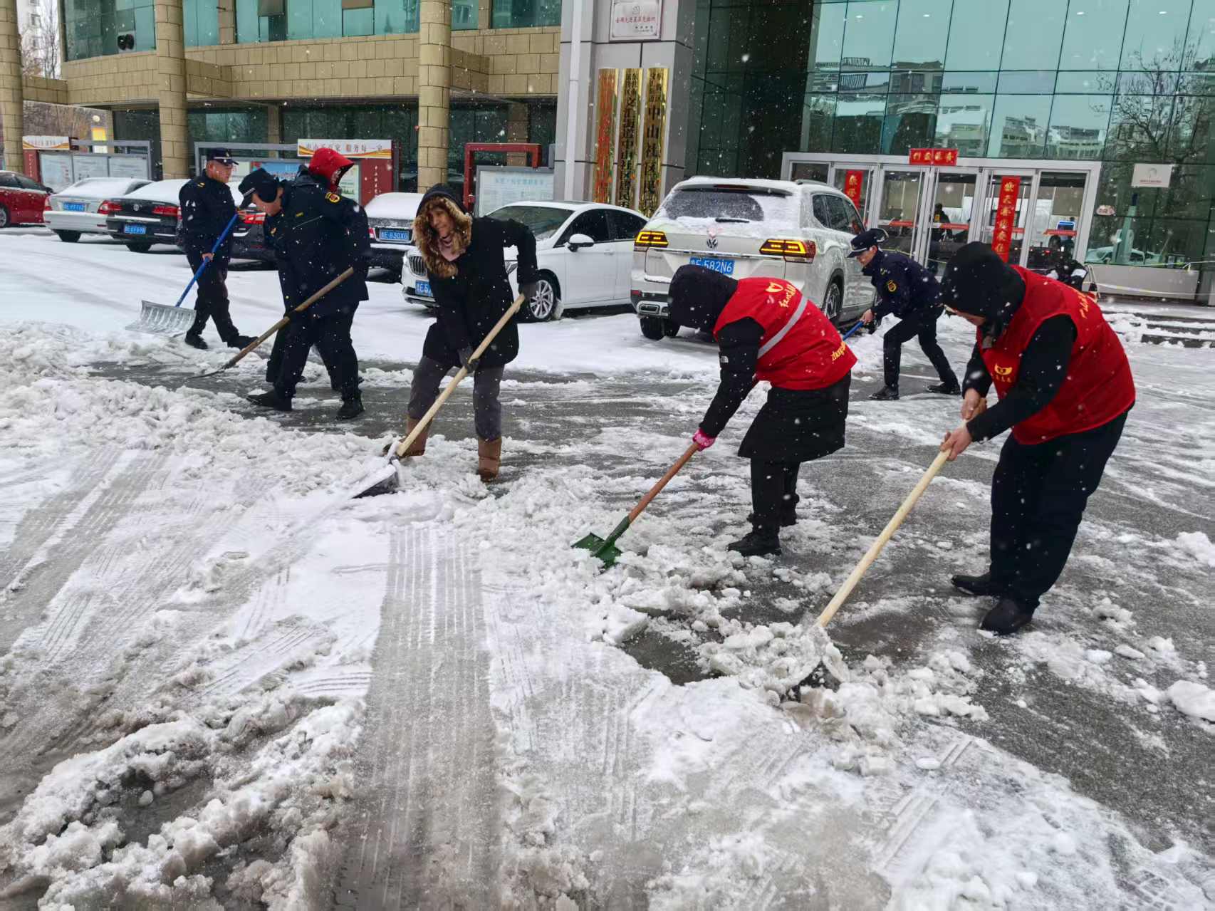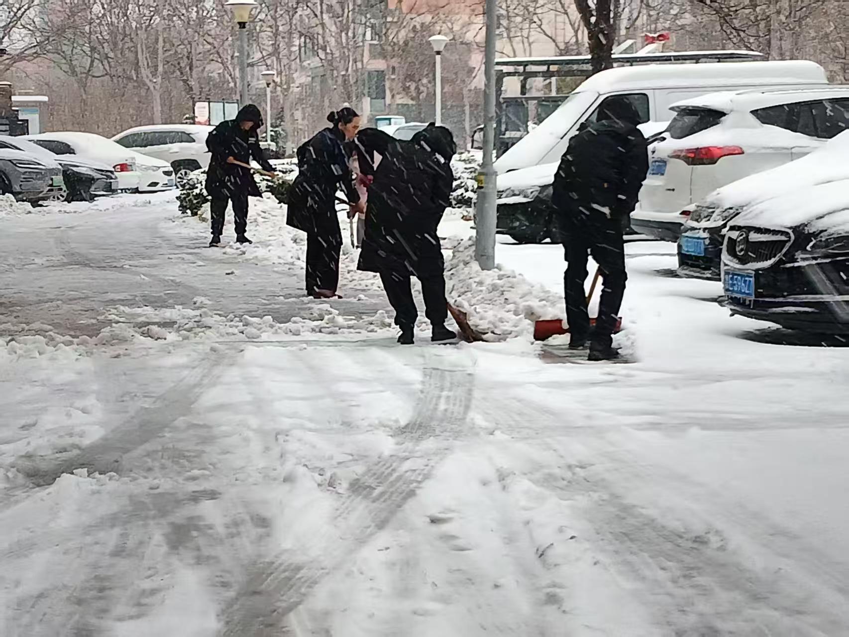 雪还未停,物业的工作人员就率先行动起来,他们拿起铁锨、铁锹,不畏严寒,持续投入到紧张的扫雪除冰工作中。社区工作人员和新区执法中队的队员们更是以身作则,用实际行动诠释了为民的宗旨。
