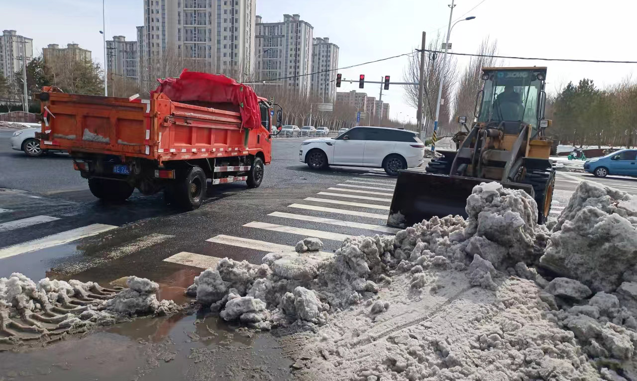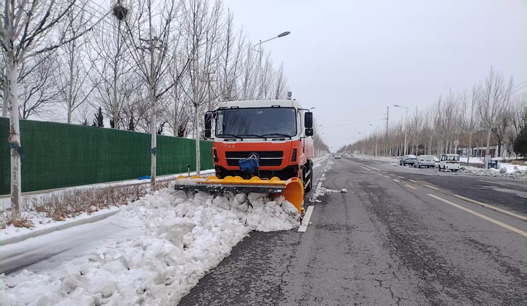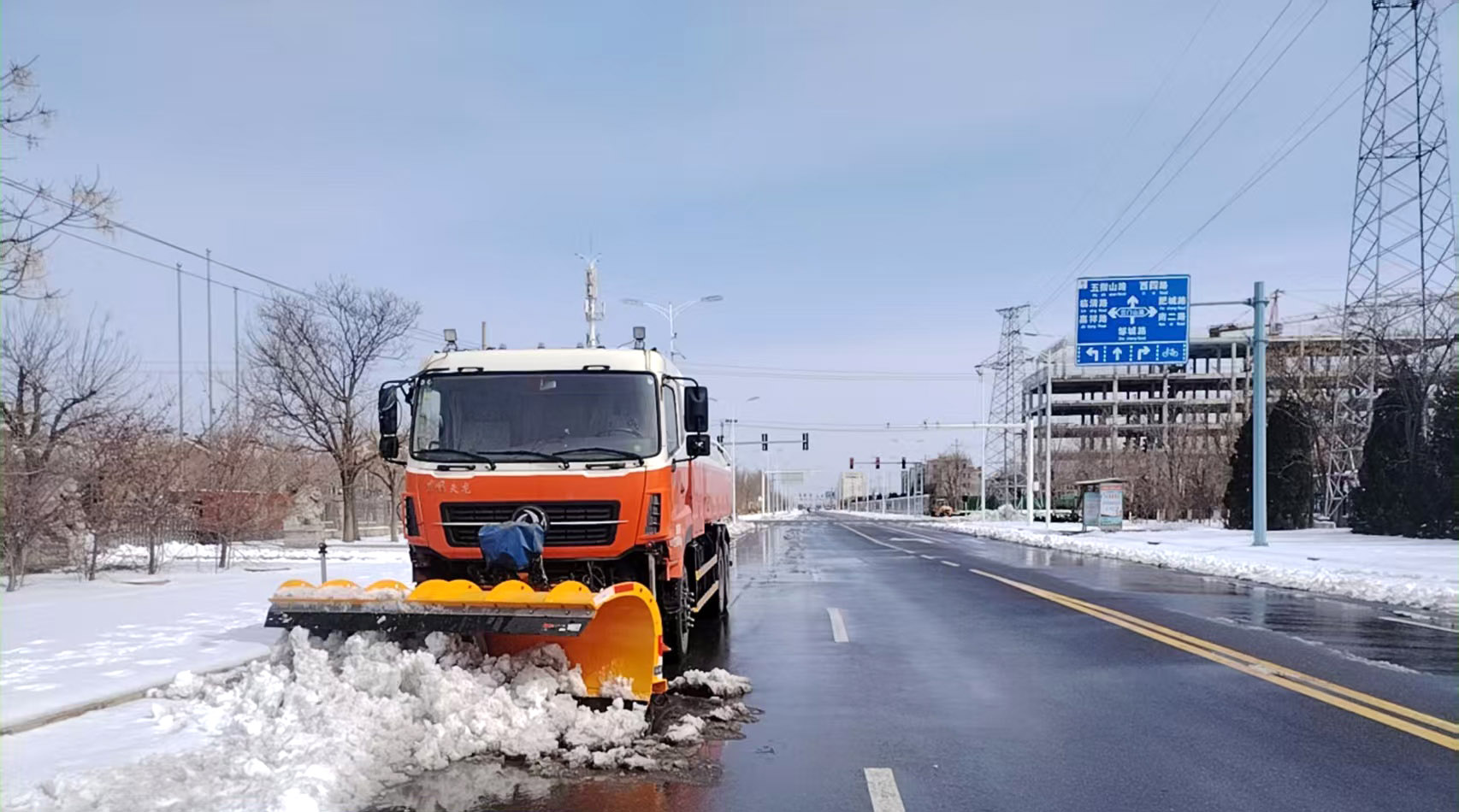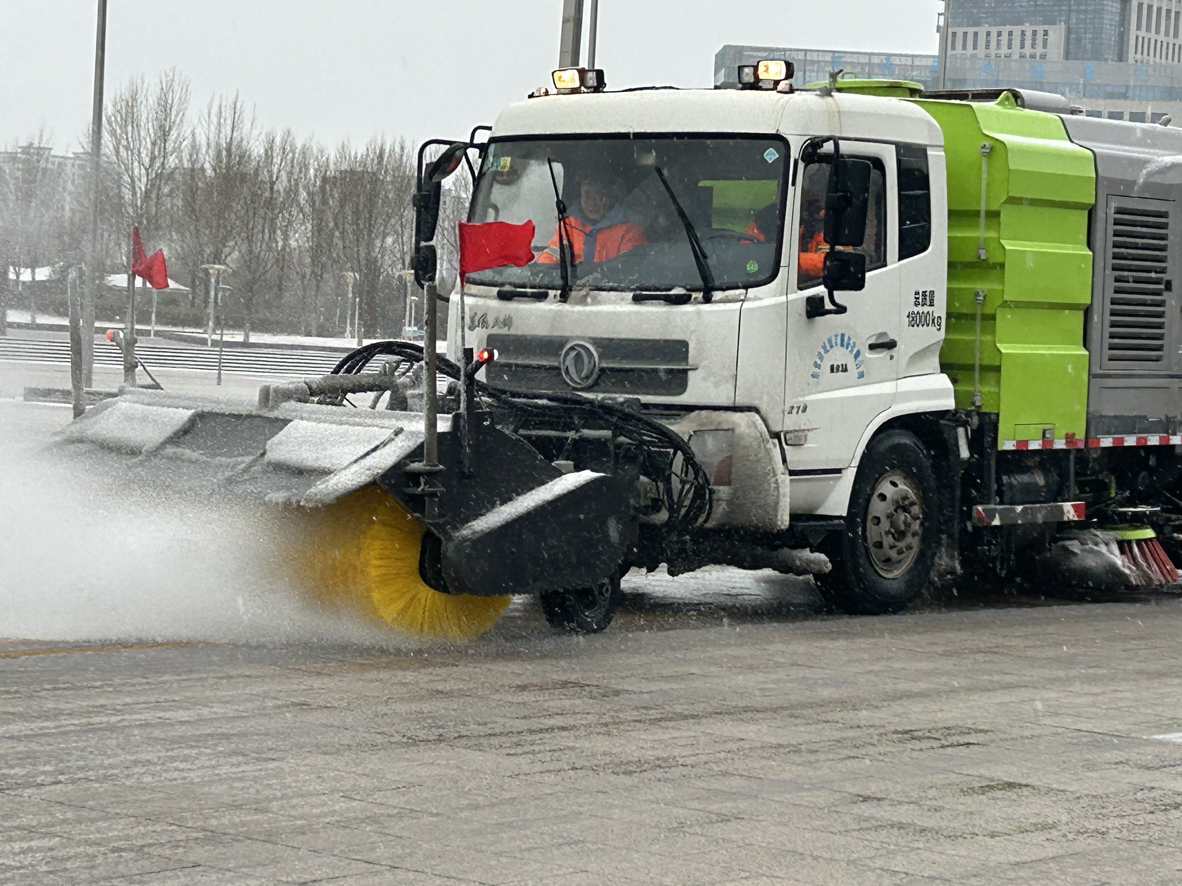 以“雪情就是命令”的责任担当,高效统筹人力物力,昼夜奋战抢通道路。截至3月3日17时,全区出动雪铲25台,雪滚27台,大型撒布机4台、小型撒布机9台、铲车及十轮六轮车辆30余台,抛撒融雪剂220吨,通过“机械为主、人工为辅”的立体化作业模式,清雪队伍对城区主干道实施“梯次推进、循环作业”。大型雪滚车与雪铲车组成联合编队,对黄河路、济南路等17条交通动脉开展“推雪+除冰”联合作业;撒布机梯队紧随其后精准抛撒融雪剂,形成“机械铲除+化学消融”双保险。经过连续36小时奋战,城区主干道积雪已全面清除,道路标线重现,对道路相对狭窄,清理难度较大的支路及背街小巷的积雪清理,在全体环卫人员的共同努力下,基本清理完成,确保城市每一个角落都畅通无阻。早晚高峰通行不受影响。