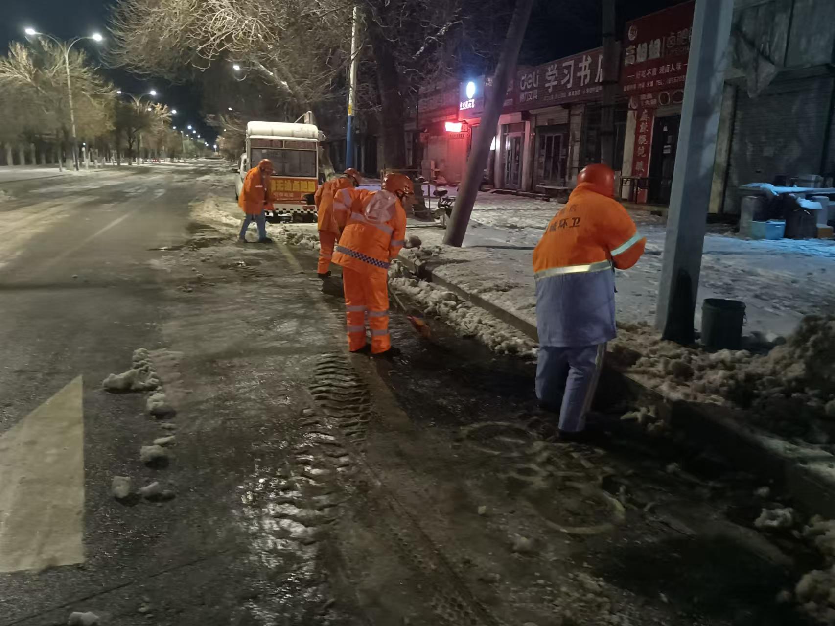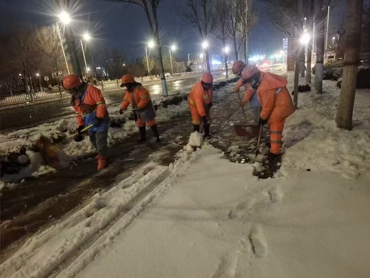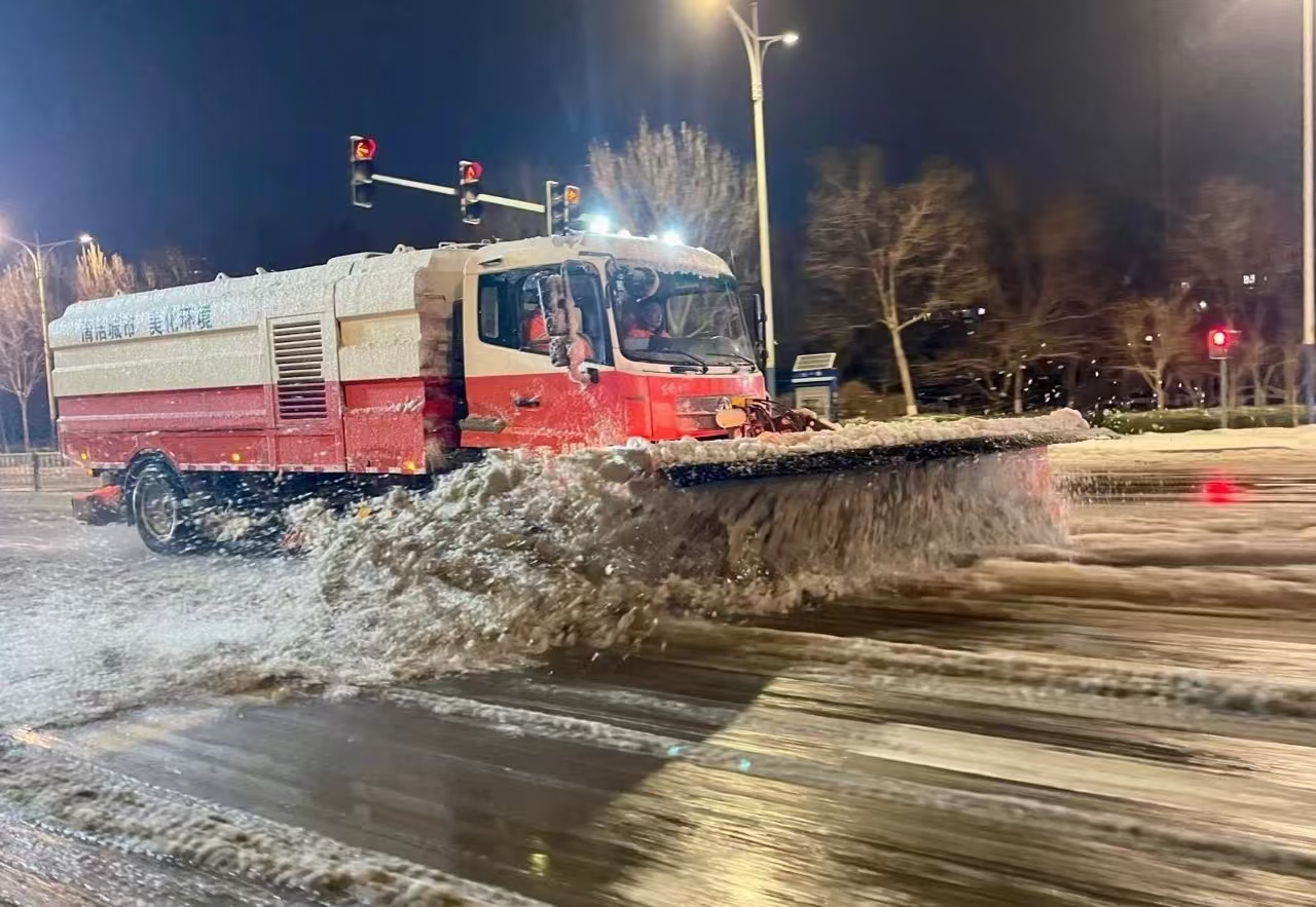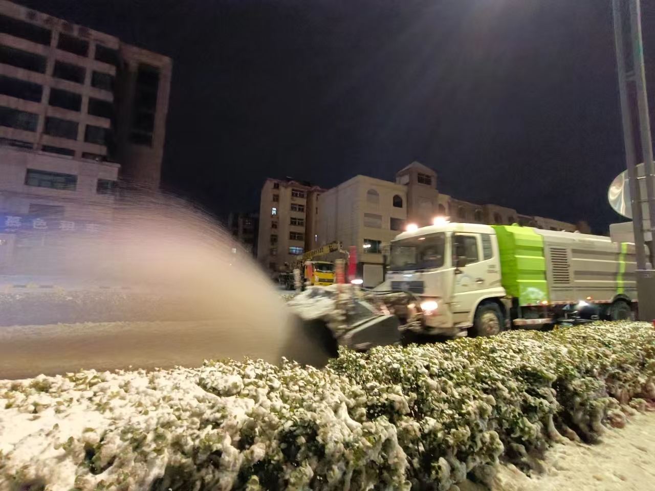以“雪情就是命令”的责任担当,高效统筹人力物力,昼夜奋战抢通道路。截至3月3日17时,全区出动雪铲25台,雪滚27台,大型撒布机4台、小型撒布机9台、铲车及十轮六轮车辆30余台,抛撒融雪剂220吨,通过“机械为主、人工为辅”的立体化作业模式,清雪队伍对城区主干道实施“梯次推进、循环作业”。大型雪滚车与雪铲车组成联合编队,对黄河路、济南路等17条交通动脉开展“推雪+除冰”联合作业;撒布机梯队紧随其后精准抛撒融雪剂,形成“机械铲除+化学消融”双保险。经过连续36小时奋战,城区主干道积雪已全面清除,道路标线重现,对道路相对狭窄,清理难度较大的支路及背街小巷的积雪清理,在全体环卫人员的共同努力下,基本清理完成,确保城市每一个角落都畅通无阻。早晚高峰通行不受影响。