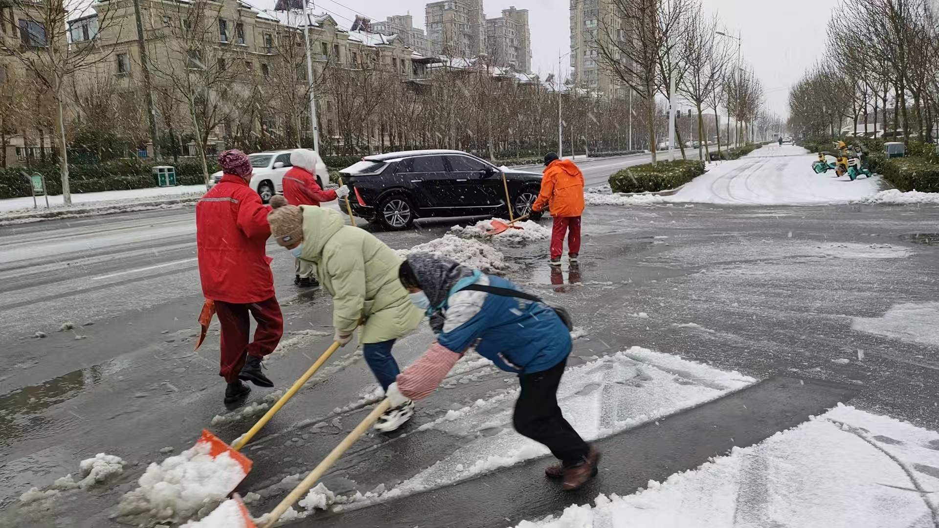 扫雪除冰,暖心护行!东营经开区胜利街道志愿者迎战风雪保畅通