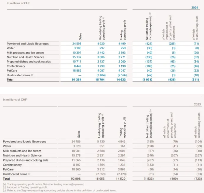 作为全球最大的食品集团之一,雀巢集团近年来业绩出现下滑。2024年,雀巢集团销售额为913.5亿瑞士法郎,同比下降1.8%,全年有机增长率为2.2%,较2023年7.2%的增长出现明显放缓,全年净利润为108.8亿瑞士法郎,同比下降2.9%。