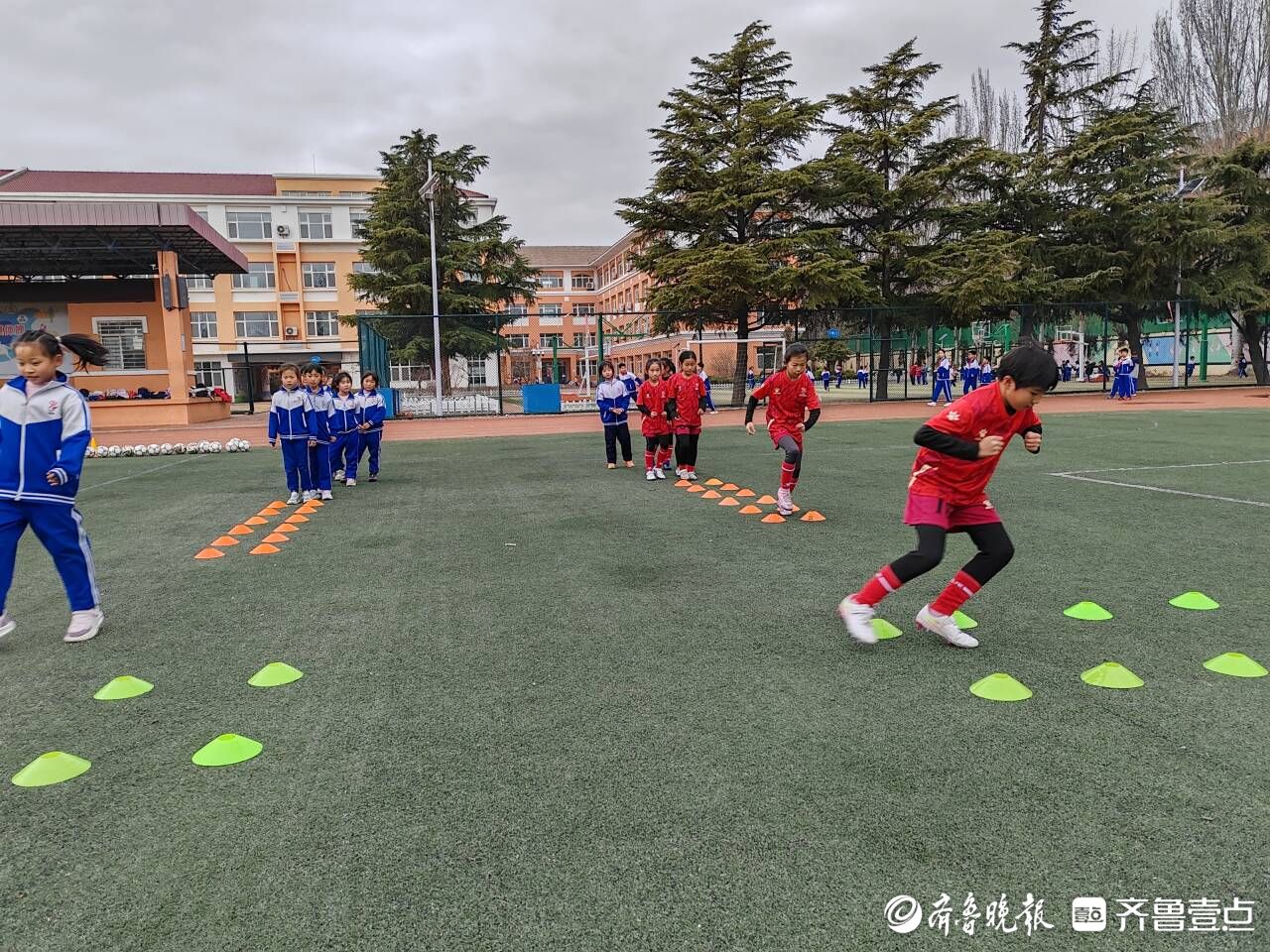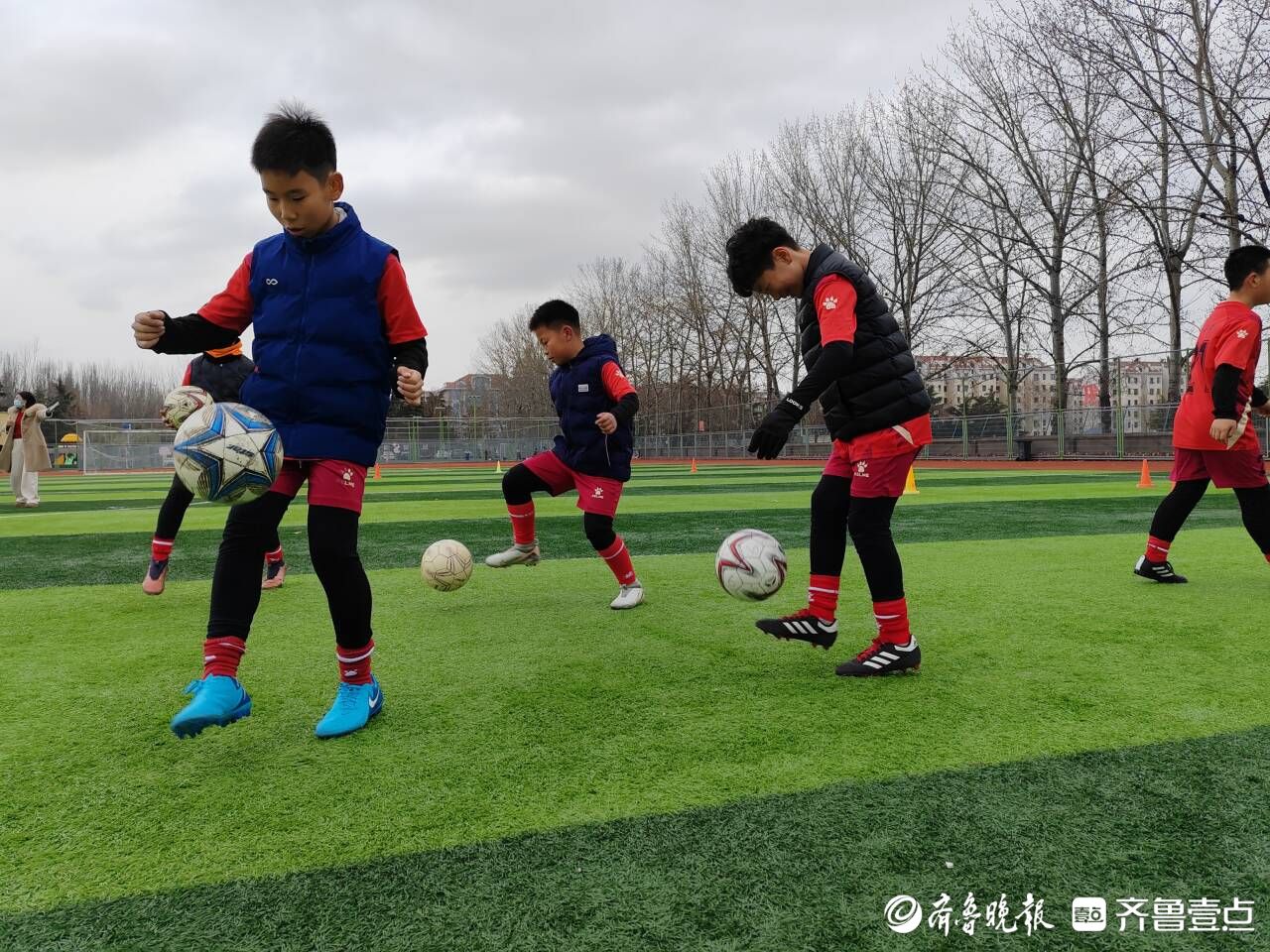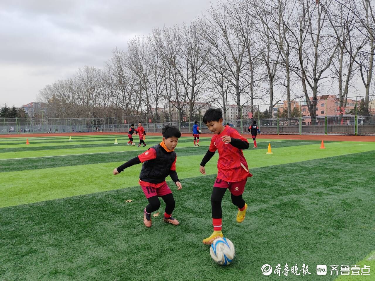 3月3日下午,随着降温、大风的登场,青岛寒意袭人。而在城阳区流亭小学的两个足球场上,一群怀揣足球梦想的少年在绿茵场上奔跑着。他们有的在教练的指导下进行体能或跑位训练,有的则在捉对“厮杀”,踢得热火朝天。队员们虽身着薄薄的球衣,但脸上已微微冒汗。无论寒暑冬夏,这是流亭小学每天下午放学后,操场上必现的场景。