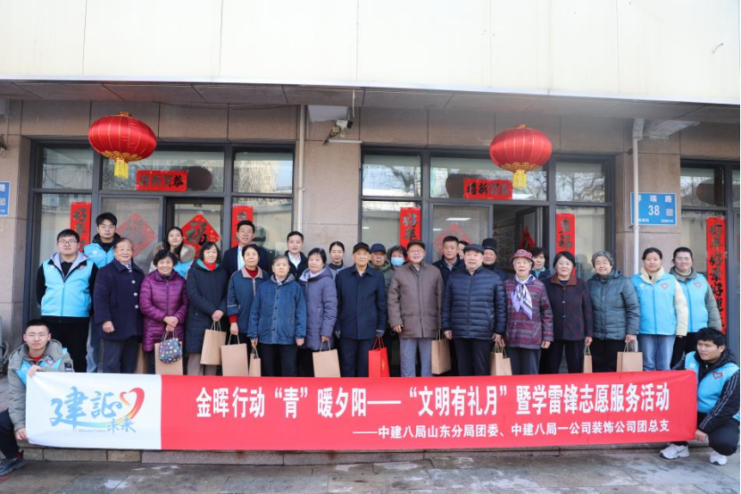 3月5日学雷锋纪念日当天,中建八局山东分局团委联合中建八局一公司装饰公司团总支,赴中建八局老年活动中心(山东)开展金晖行动——“青”暖夕阳“文明有礼月”暨学雷锋志愿服务活动。本次志愿服务以“爱心清洁”“公益义剪”“健康慰问”三大行动为载体,呈现了一场青春与金晖的温暖交融。