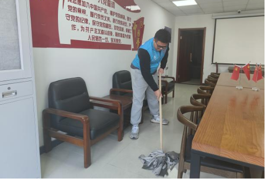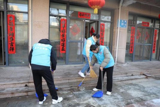 志愿者们早早地来到活动中心,打扫地面、擦拭门窗、清理积雪,迅速投入到紧张而有序的志愿服务中。在志愿者的努力下,活动中心很快窗明几净,焕然一新,为大家营造了一个整洁、温馨的公共娱乐环境。