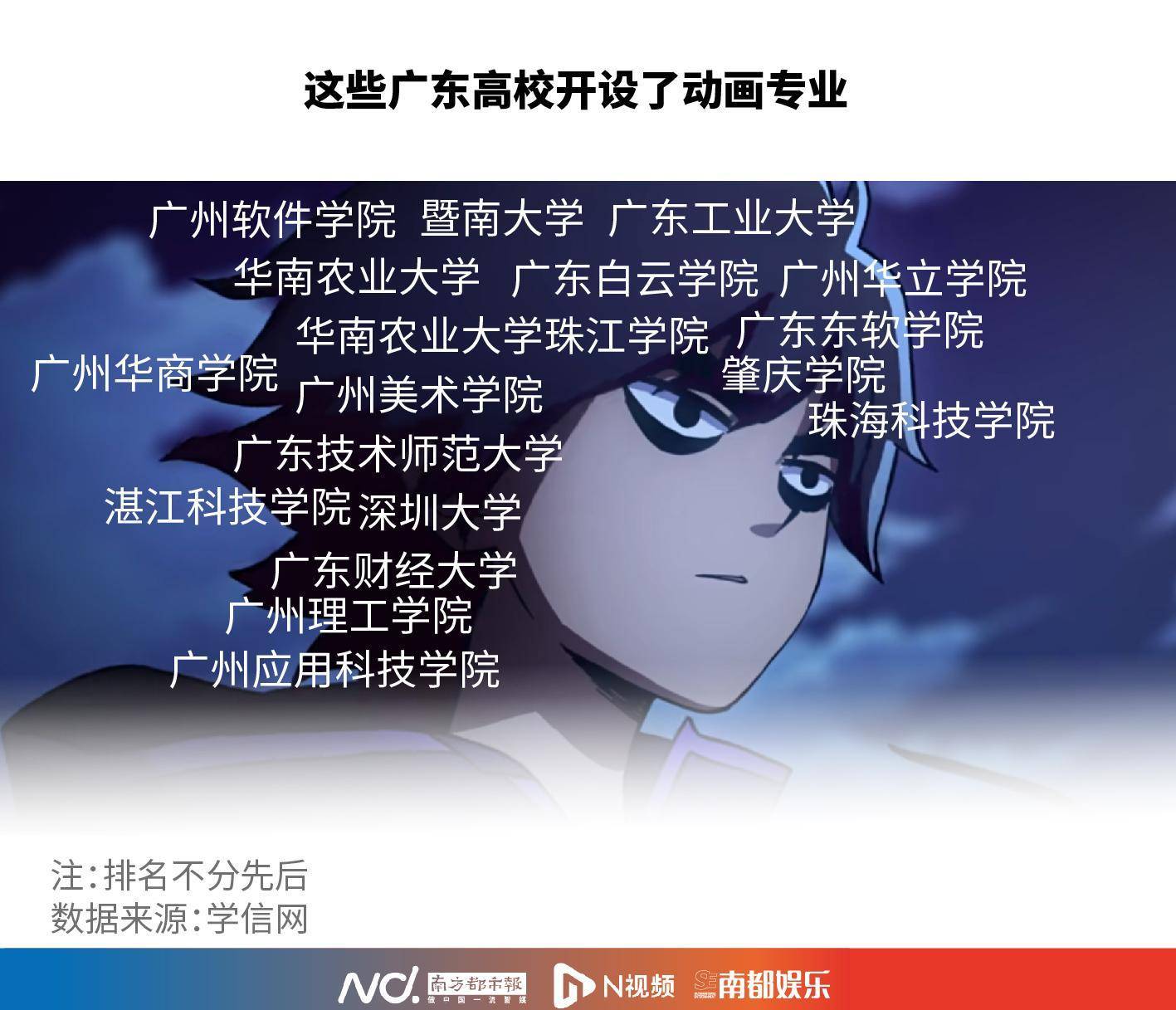 学信网显示,广东有广州美术学院、华南农业大学、暨南大学、广东财经大学等18所高校开设动画专业,各学校凭借自身优势打造独特教学模式,培养动画人才。