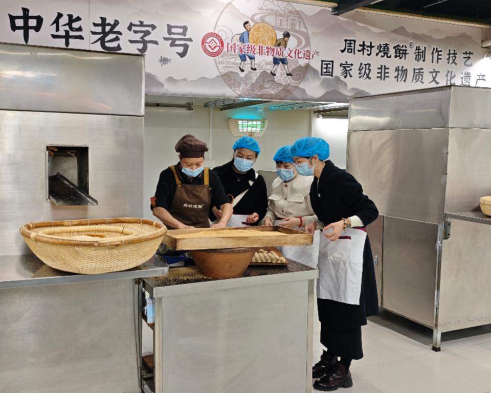 探非遗匠心,品味“舌尖上的传承”。活动首站走进周村烧饼博物馆。在讲解员的带领下,大家深入了解了周村烧饼从汉代“胡饼”演变至今的千年历史,近距离观摩了“薄如秋叶、形似满月”的传统制作工艺。一张张金黄酥脆的烧饼,不仅承载着文化记忆,更展现了传统产业在新时代消费浪潮中的蓬勃生机。在互动体验区,女干部职工们纷纷化身“非遗手艺人”,亲手捻制、贴烤烧饼,在酥香弥漫中感受传统技艺的匠心独运,体悟“老字号”守正创新的发展之路。