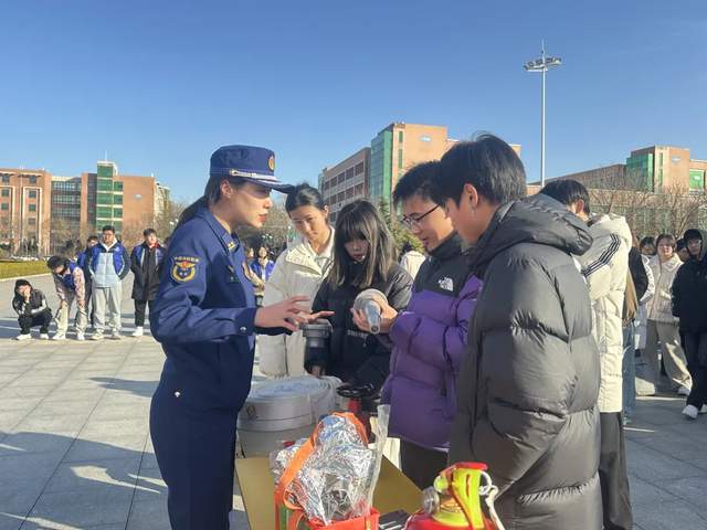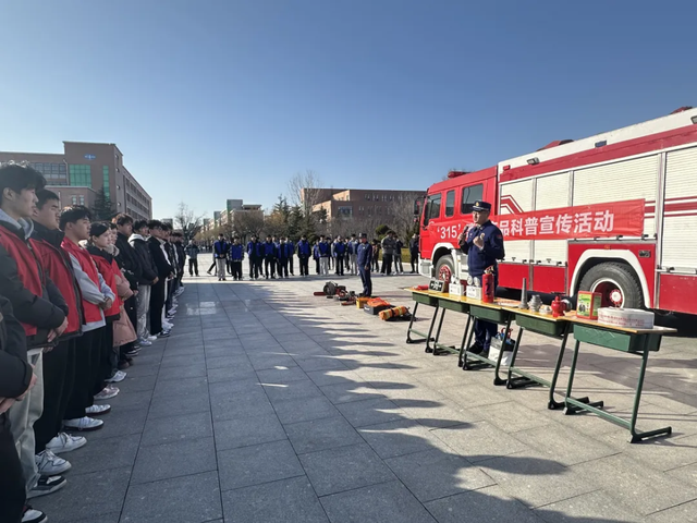 在烟台汽车工程学院红旗广场,大队通过"理论+实践"双轨培训模式,将400余名学生会骨干、宿舍安全员、大学生志愿者培训为"消防质检专员",为今后的校园消防安全管理提供保障。活动中,消防员系统讲解了6类常见消防产品的功能参数、使用规范及维护要点,并现场开展对比教学,使参训学员们能够清晰地看到正品与伪劣消防产品在结构、材料和质量上的差异,从而学会了真伪消防产品的辨别方法。