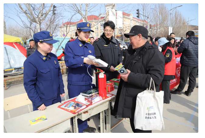 315期间正值福山区龙王山会举办之日,大队借助山会人流客流量大的特点,联合市场监管局设立流动宣传站,通过悬挂横幅、摆放宣传展板、发放宣传资料等多种形式,向过往群众普及消防产品知识,帮助群众树立正确的消防产品消费观念,进一步提高居民的消防安全意识和自我保护能力,激发群众参与打击假冒伪劣消防产品的热情。