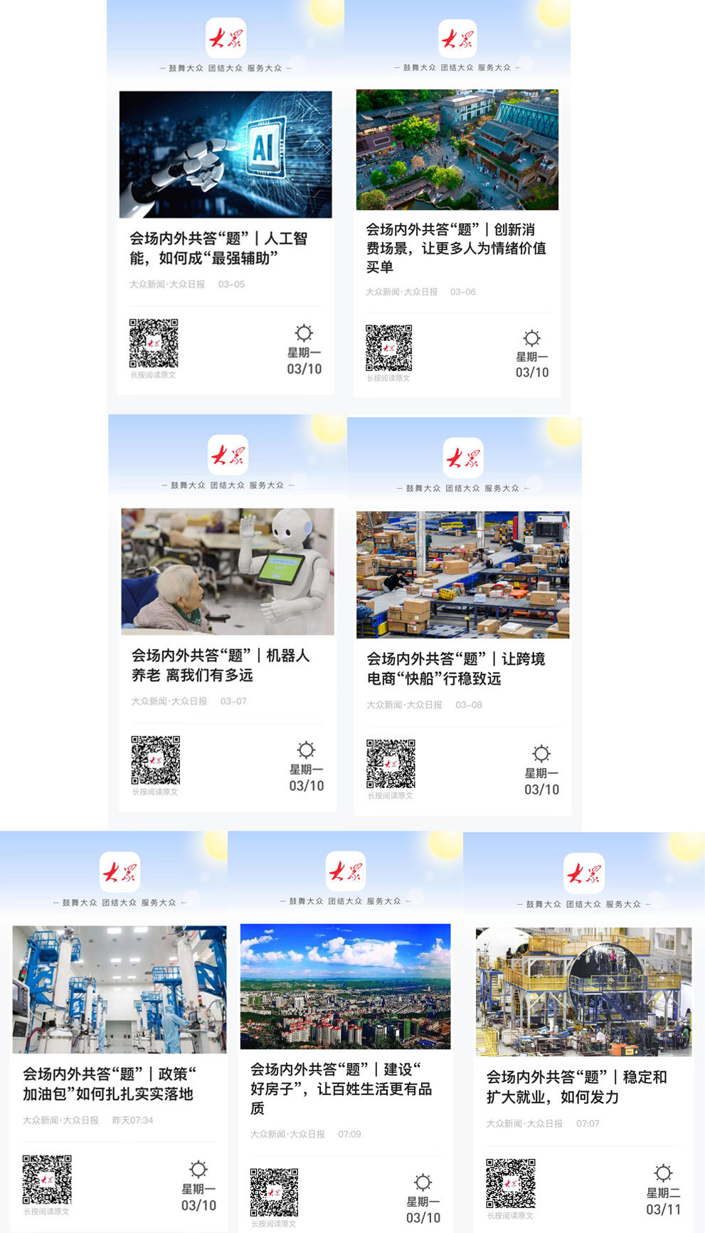 全国两会期间,大众新闻通过网上开展互动活动,梳理百姓关注、企业关心的话题,带上会场与代表委员一起探讨,会场内外共答“题”,实现同频共振、温暖共鸣。