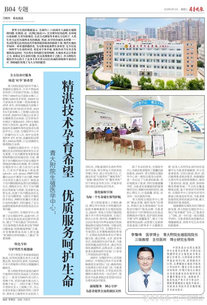 青大附院生殖医学中心:精湛技术孕育希望 优质服务呵护生命