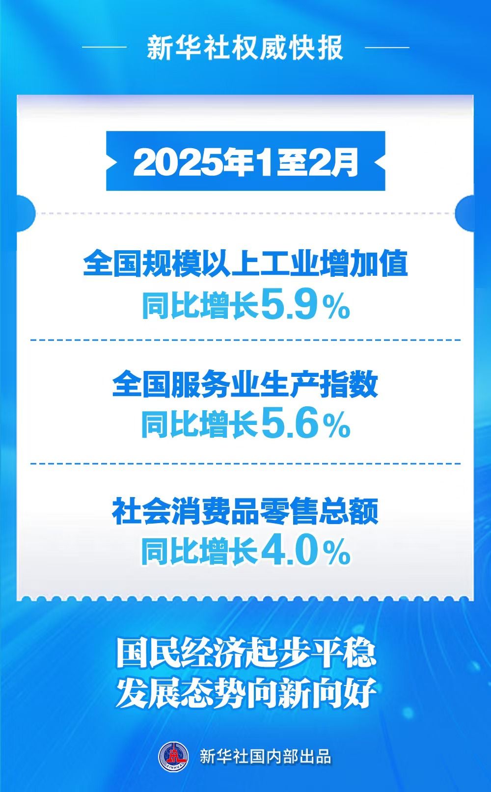 今年前2个月国民经济起步平稳、发展态势向新向好
