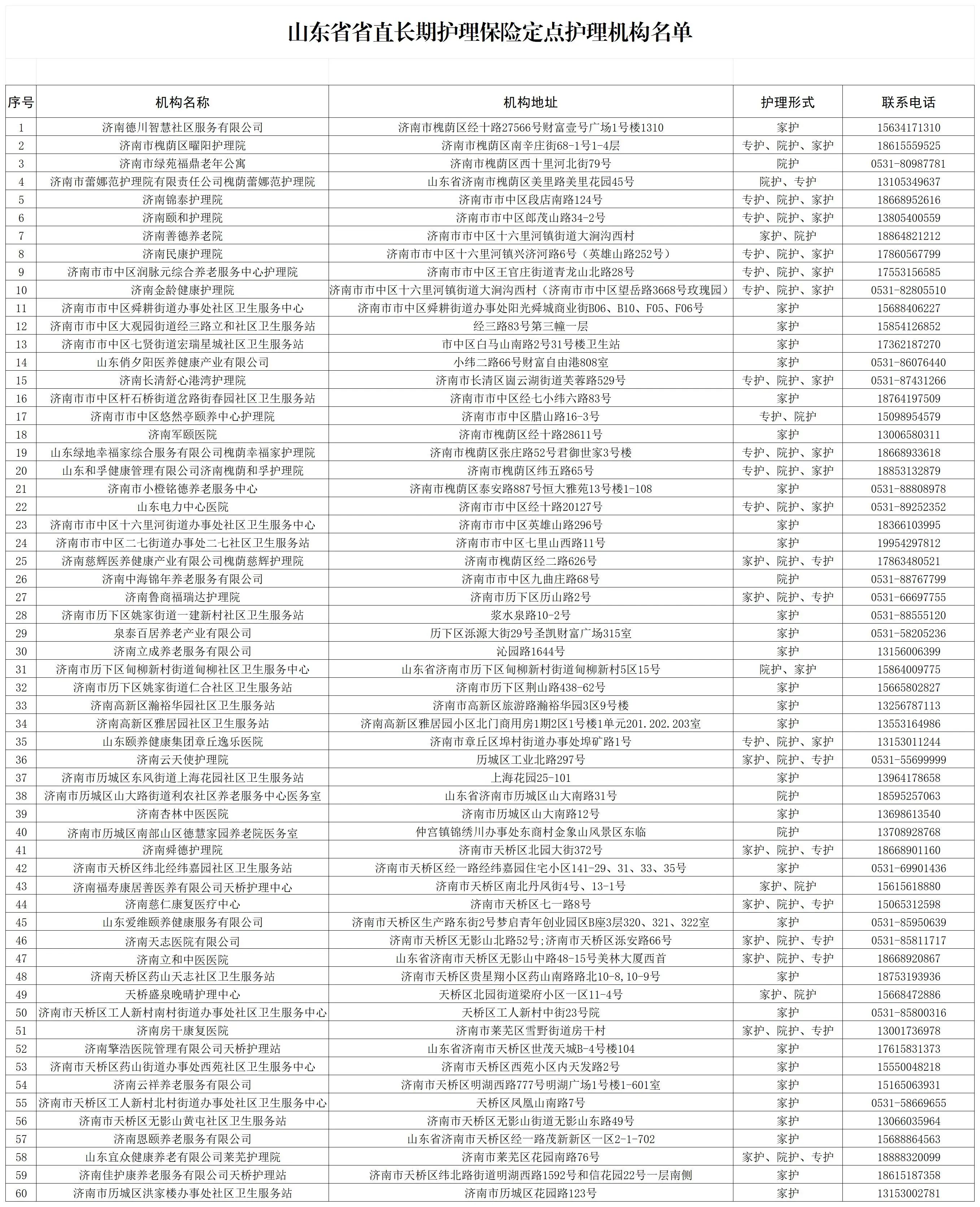最新!山东省省直长期护理保险定点机构名单 山东省医疗保障局 2025-03-18 4506 山东省省直长期护理保险定点机构名单 (3月14日更新) 为方便参保人查阅省直定点护理机构,现将山东省省直长期护理保险定点机构名单梳理汇总后公布如下。 责任编辑:孔令茹