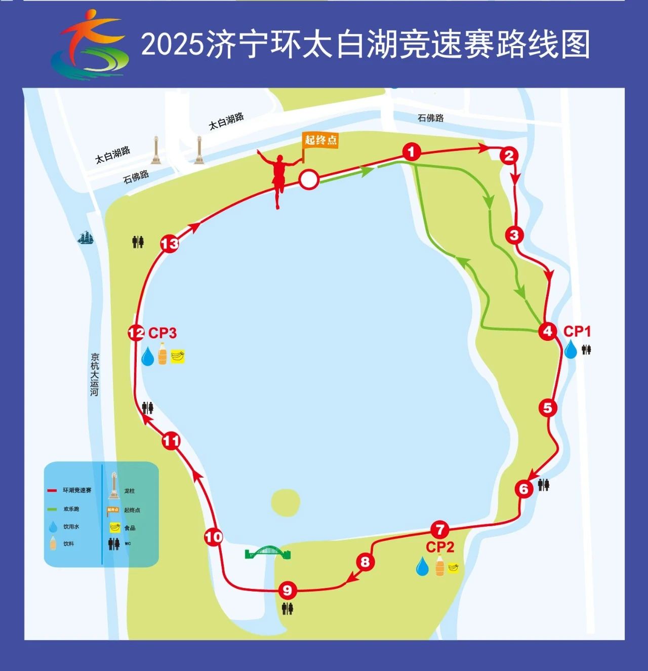 2025济宁环太白湖竞速赛赛道参考路线来啦! 济宁新闻客户端 2025-03-19 环湖竞速赛线路描述 太白湖游船码头—鼎湖路—太白湖东线—太白湖南线—太白湖西线—观景平台—太白湖游船码头 欢乐跑线路描述 太白湖游船码头—鼎湖路—太白湖东线—滨湖路—鼎湖路—太白湖游船码头 起点 太白湖游船码头定位 来源:太白湖景区