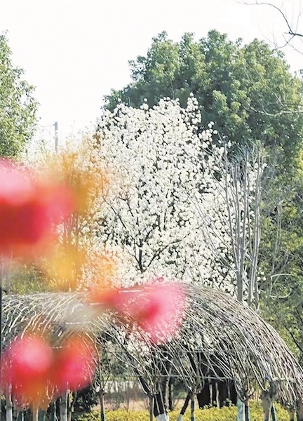 新洲区问津茶苑的樱花 通讯员沈雷平摄