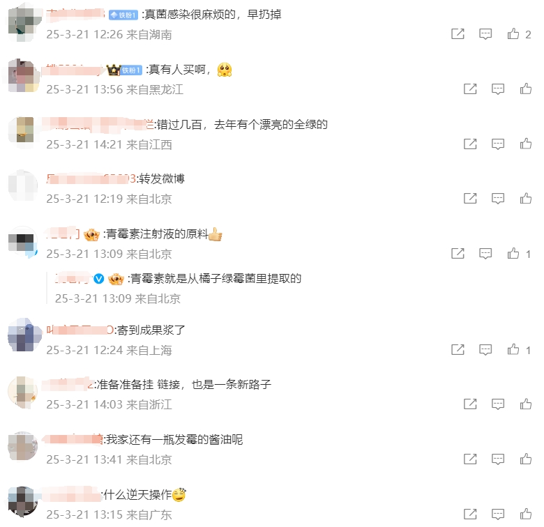 对此,网友表示:真菌感染很麻烦的,还是早扔掉好;也有网友发出质疑:还真有人买啊?