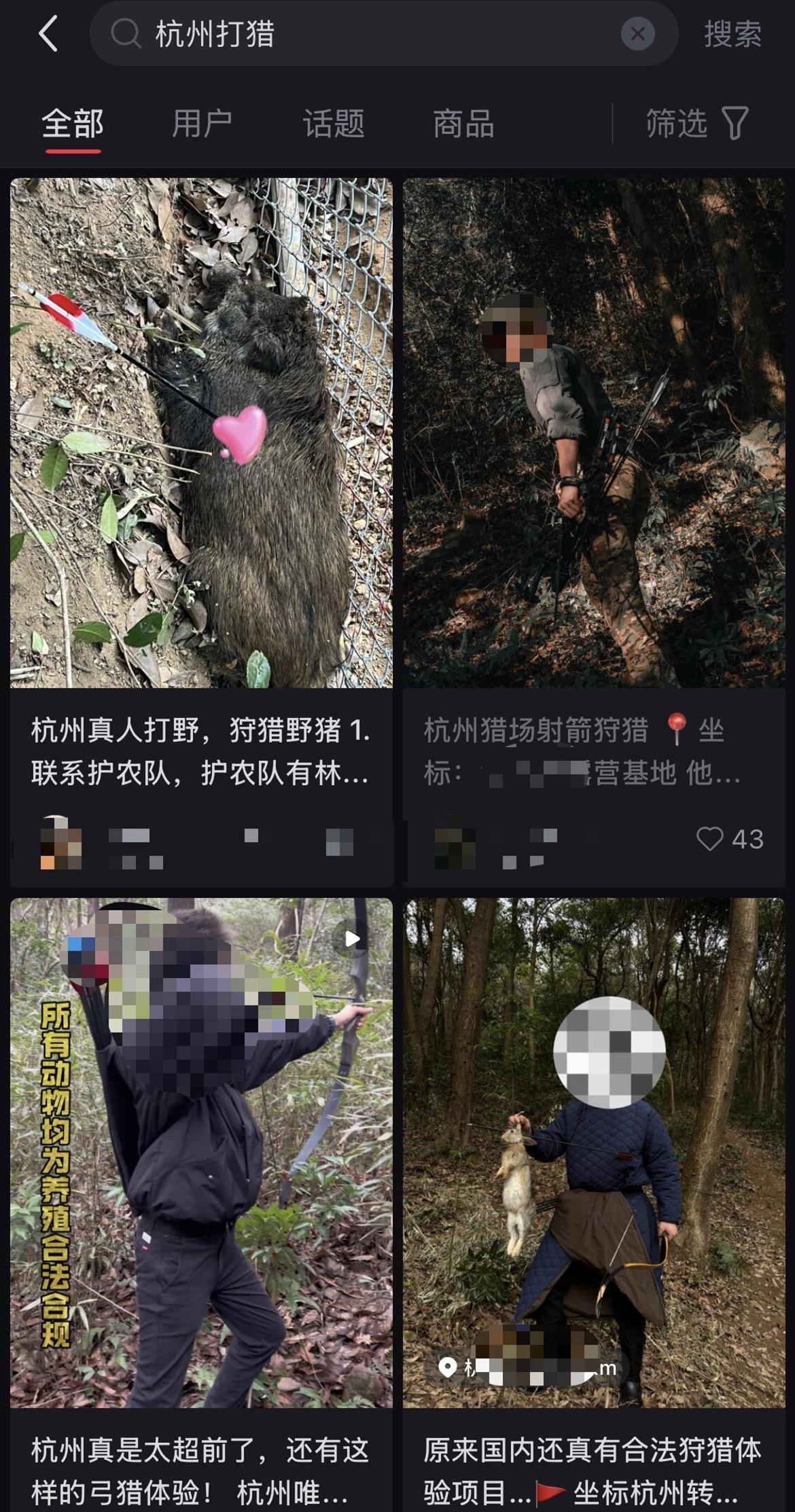 潮新闻记者发现,部分发布“弓箭打猎”活动的帖子定位显示在杭州,指向西湖区双灵村一处山地营地。