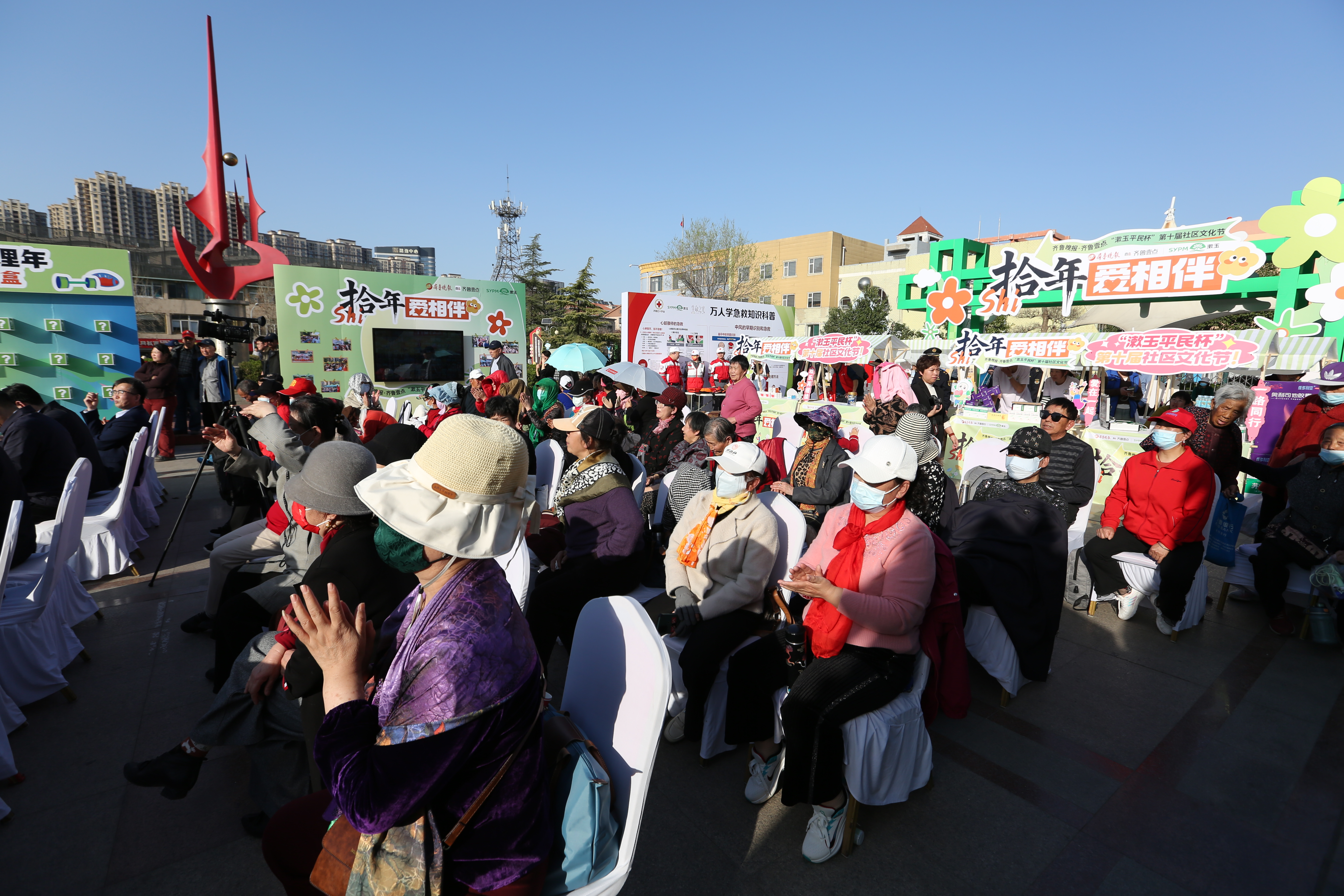 拾年爱相伴!3月22日,齐鲁晚报·齐鲁壹点“漱玉平民杯”第十届社区文化节在济南历城区南全福中心广场开幕。活动现场,急救专家为居民科普急救知识。