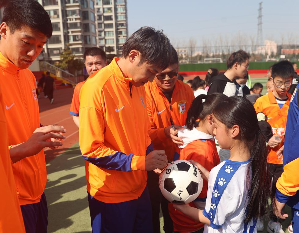 3月22日,山东泰山足球俱乐部携手山东省体育记者协会,在临沂市临沭县北城实验学校成功举办了“超越·爱”公益系列活动。本次活动以“传承沂蒙精神,弘扬足球文化”为主题,旨在通过足球传递公益力量,推动校园足球发展,践行社会责任。
