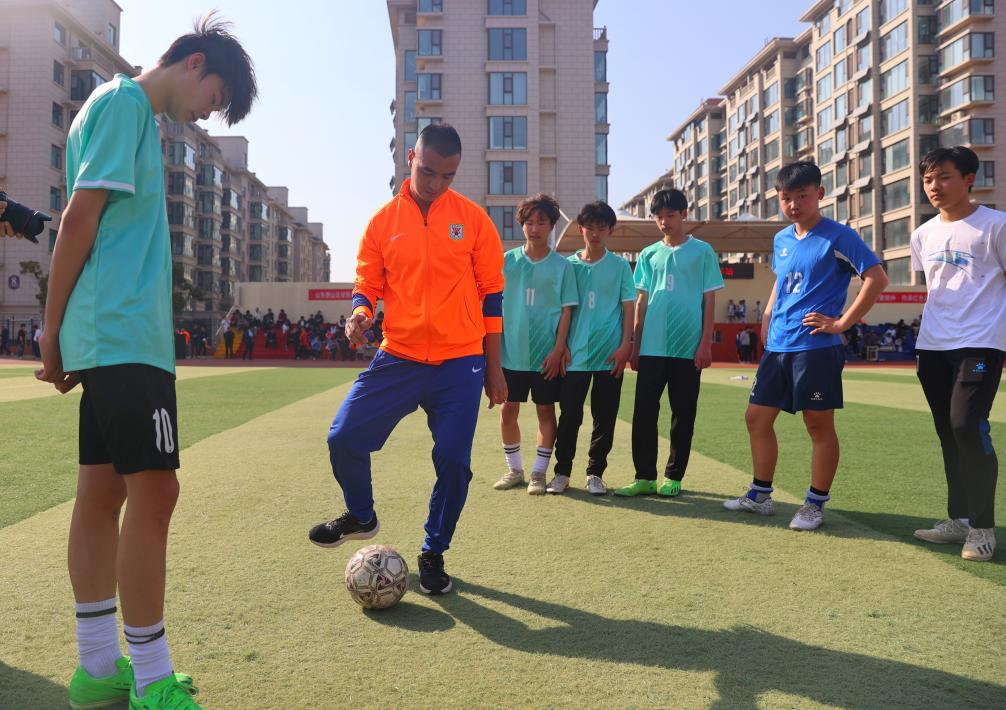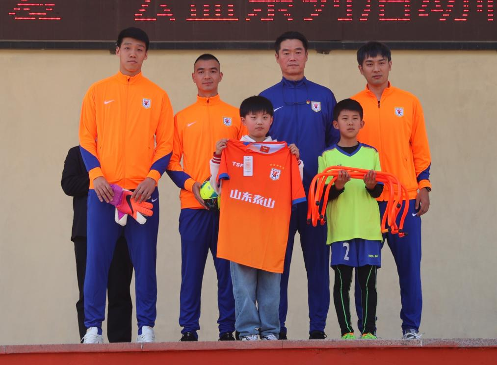 活动中,山东泰山足球俱乐部向学校及临沭县体育部门捐赠了签名足球、签名球衣、守门员手套及专业足球训练装备等物资,山东省体育记者协会体育记者足球联队也向学校捐赠了学习用品和足球装备。随后,俱乐部球员们给学生们进行了足球基础技能培训,并组织了趣味足球游戏,让孩子们在欢声笑语中感受足球的魅力。