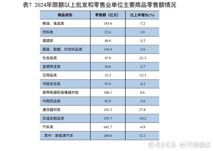 齐鲁晚报·齐鲁壹点记者获悉,2024年,济南市社会消费品零售总额5213.2亿元,比上年增长0.3%。按经营单位所在地分,全市城镇消费品零售额4577.8亿元,比上年增长0.4%;乡村消费品零售额635.4亿元,下降0.3%。按消费类型分,全市商品零售4443.2亿元,比上年增长0.2%;餐饮收入770.0亿元,增长1.0%。限额以上单位(限额以上单位是指年主营业务收入2000万元及以上的批发业单位、500万元及以上的零售业单位、200万元及以上的住宿和餐饮业单位。单位包括法人企业、产业活动单位和个体户)消费品零售额1951.8亿元,下降3.7%。