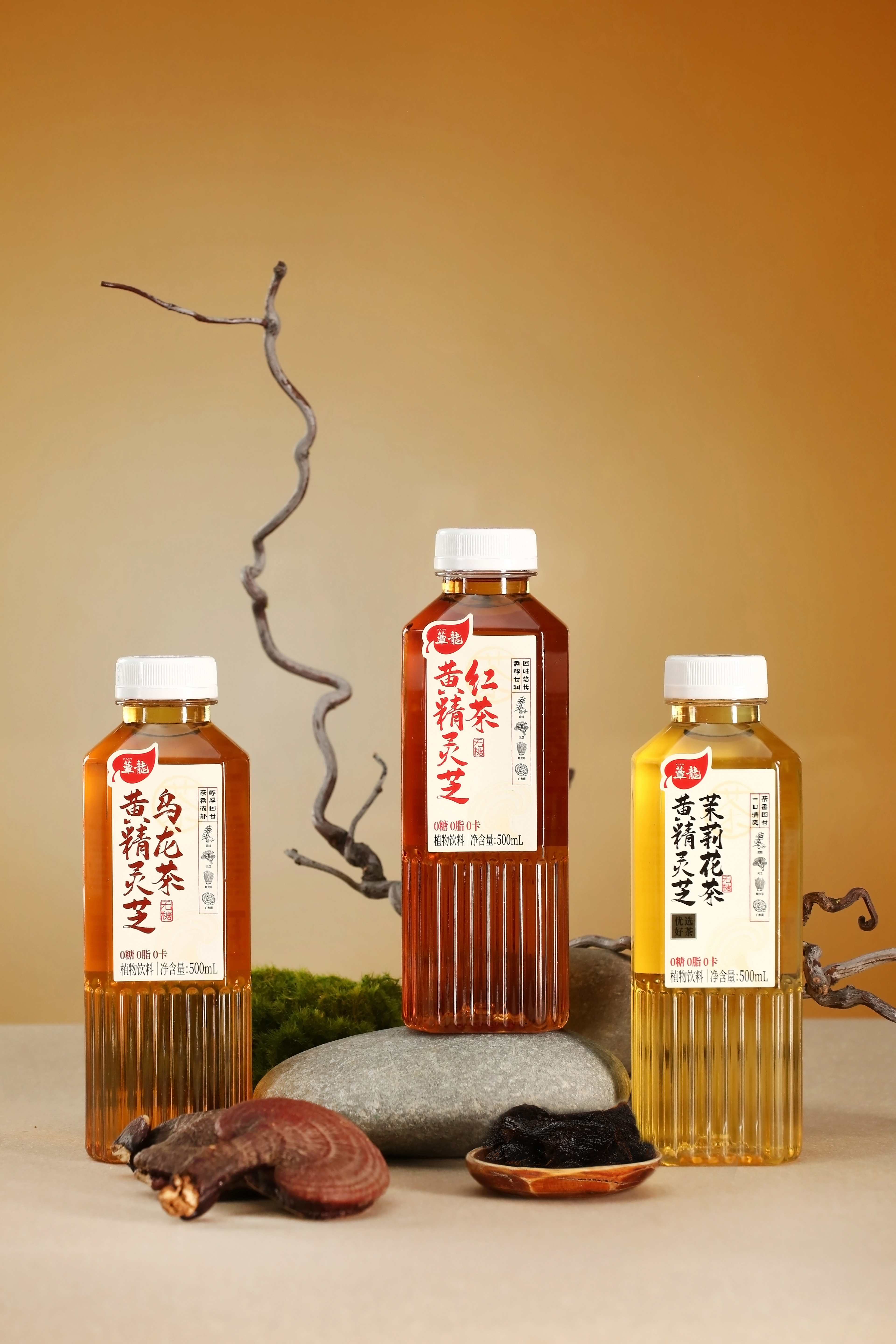 在茶底选择方面,蕈龙黄精灵芝茉莉花茶,精选四川福建优质茶坯与广西横县双瓣茉莉,茶香四溢,入口清爽回甘。蕈龙黄精灵芝乌龙茶,其茶底选用了来自千年古茶都建瓯的乌龙名茶闽北水仙,经文火慢焙而成,焦香醇厚。蕈龙黄精灵芝红茶,精选了贵州遵义金牡丹红茶,经萎凋、揉捻、发酵等工艺匠心制作,茶底香气高长,花果蜜香浓郁,入口顺滑回甘。黄精及菌菇提取液与茶原液充分融合,多重营养加持,让好喝更健康。