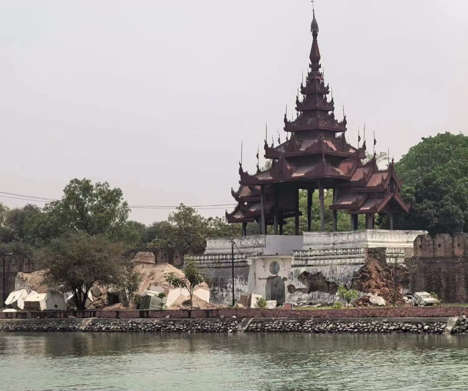 这是3月28日在缅甸曼德勒省拍摄的地震后受损的曼德勒皇宫围墙。新华社
