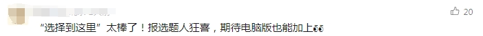 有网友评论“‘选择到这里’太棒了!报选题人狂喜,期待电脑版也能加上”,也有网友调侃“有没有一种功能,换成英语版之后零钱变美金的”......