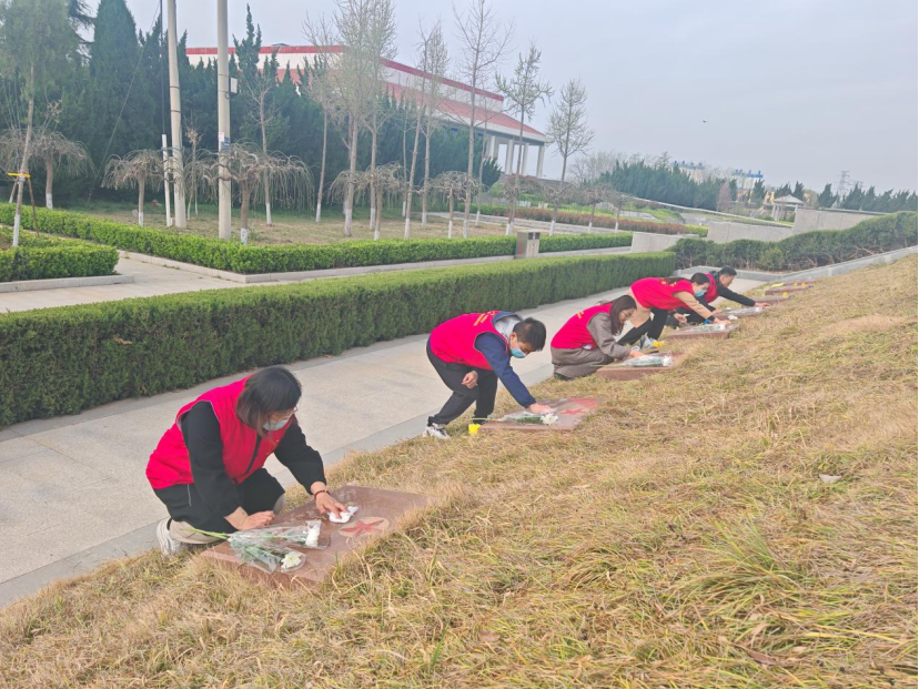 另外,陵园积极组织开展“清明祭扫”志愿服务活动,大家走进烈士墓区擦拭墓碑,为烈士们献花、鞠躬,并为烈士家属提供代祭扫服务,以代祭的方式,为不能到现场祭扫的群众向逝者传递哀思。