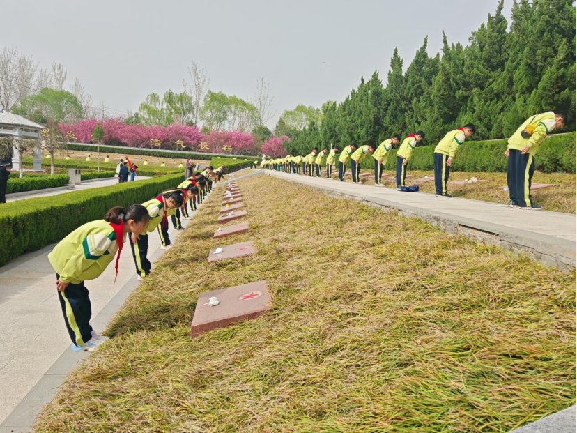陵园与牡丹区实验小学共建“小小讲解员”实践基地,学生志愿者为游客讲述红色故事;市实验小学、花都小学、菏泽二中、长城路学校、国花中学等组织“清明祭英烈”主题教育,2万余名师生通过诵读给烈士的信、老兵讲红色故事、参观纪念馆、烈士墓祭扫等形式,沉浸式接受精神洗礼,从历史中汲取前进动力,让红色基因代代相传。