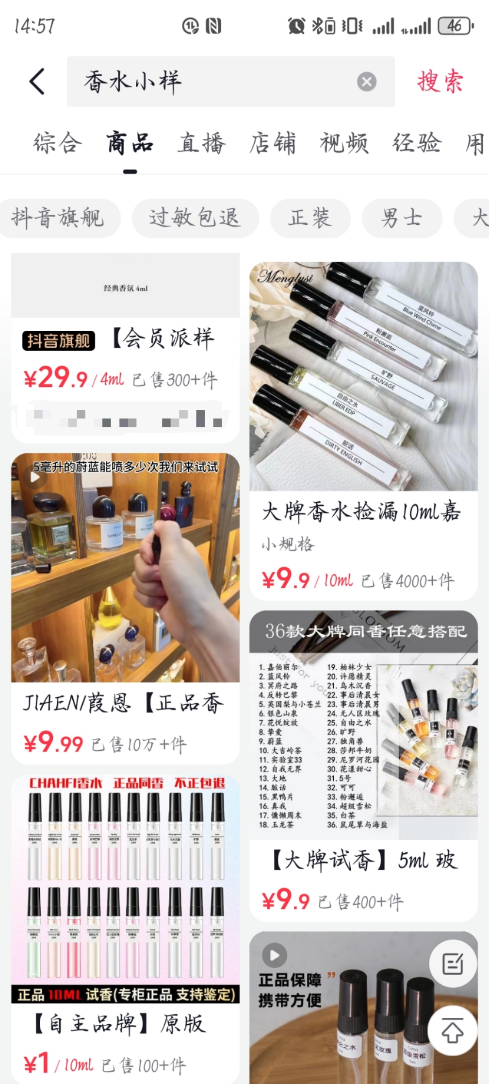 记者在大部分电商平台输入“大牌香水小样”“化妆品分装”“小样”等字样可以搜出超万件商品,从国际大牌到国货新锐无所不包。这些正装价格动辄几百上千元的商品,“化身”为分装或小样,消费者就能以正装价格十分之一,甚至更低的价格购买。销量还都不错。
