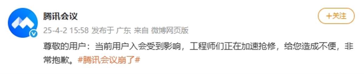 4月2日下午,#腾讯会议崩了#冲上微博热搜。