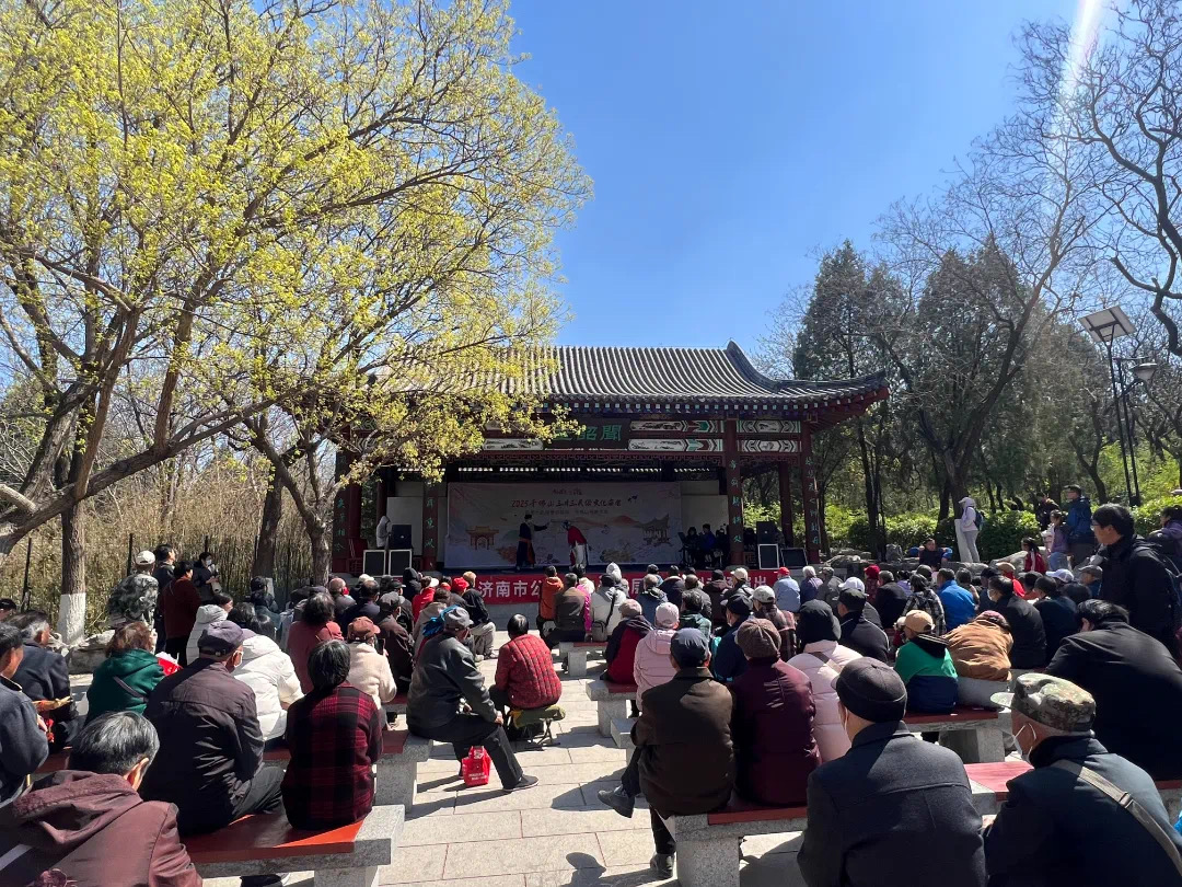 千佛山景区以“三月三民俗文化庙会”为核心,构建沉浸式文化体验空间。民俗演艺精彩纷呈,正门牌坊前南狮腾跃采青,锣鼓声点燃春日热情;京剧、吕剧及民族管弦乐专场演出通过经典剧目展演,展现戏曲艺术魅力。