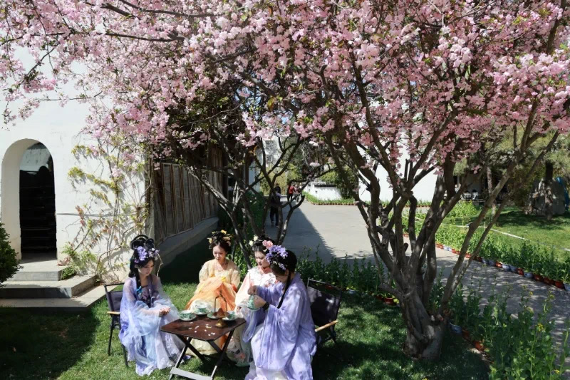 济南植物园以“花漾仙境”为主题打造国风盛宴。百名汉服爱好者巡游花海,设置古琴、纸伞等国风打卡点,营造 “一步一景”的国风氛围。投壶、飞花令等传统游戏吸引亲子家庭参与。