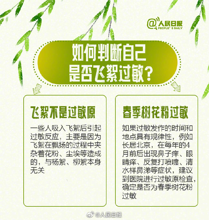 转需!飞絮期易过敏人群防护指南 人民日报微博 2025-04-06 1.2万 目前,北方多地进入飞絮期。飞絮会带来哪些困扰?对易过敏人群来说,飞絮期如何做好防护?详戳了解↓↓转发提醒身边易过敏的TA! (人民日报微博) 责任编辑:朱洪蕾